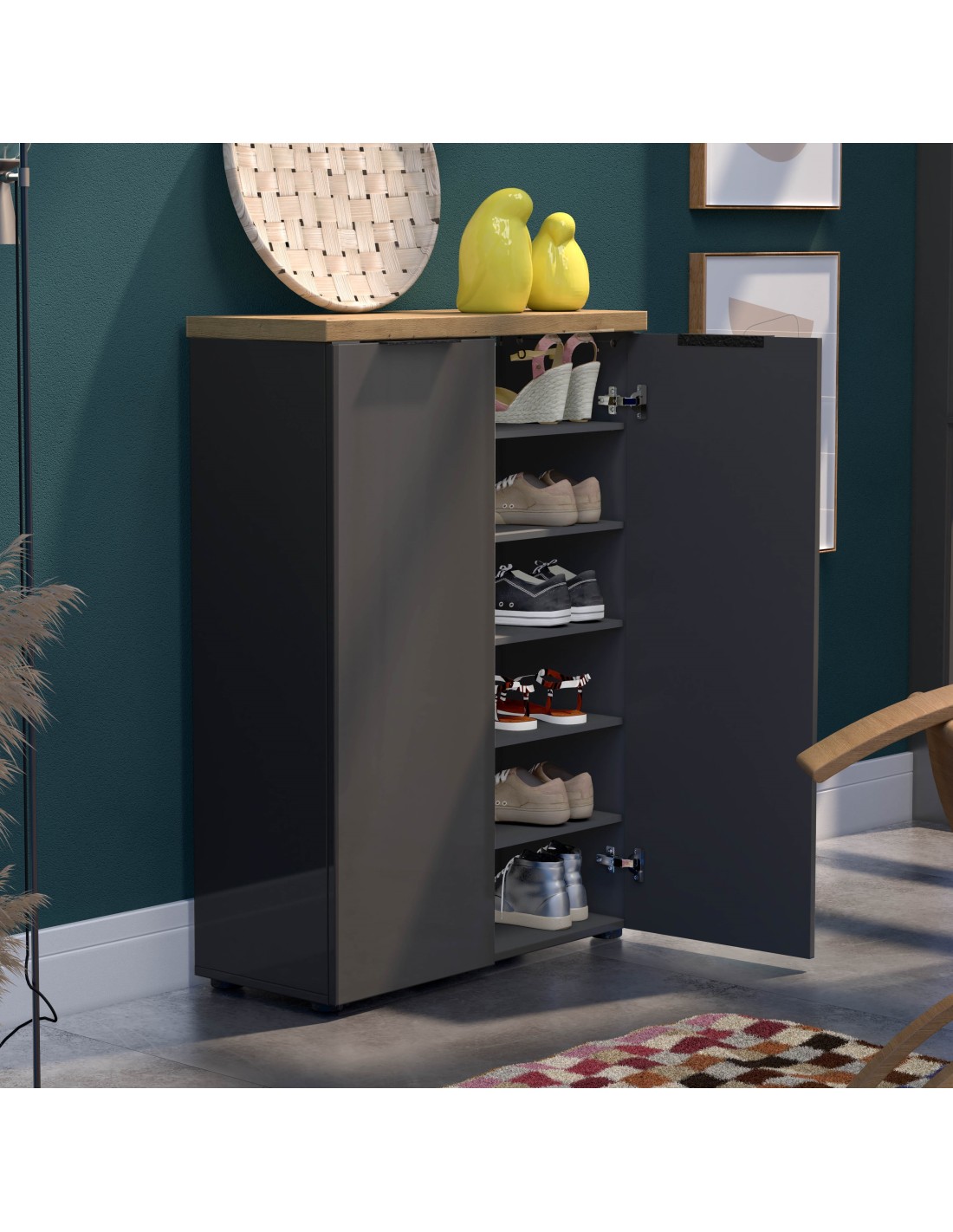 Colore: Antracite laccato lucido/Rovere chiaro.