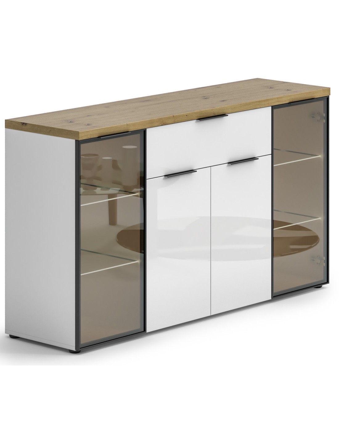 Porta TV 2 ante - 1 cassetto nella parte superiore in vetro.