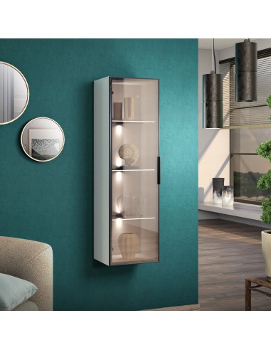 Madia 2 ante vetro - 2 ripiani in vetro - 2 ante - 1 cassetto Bianco lucido/Rovere artisan