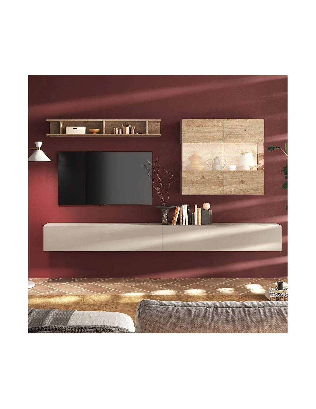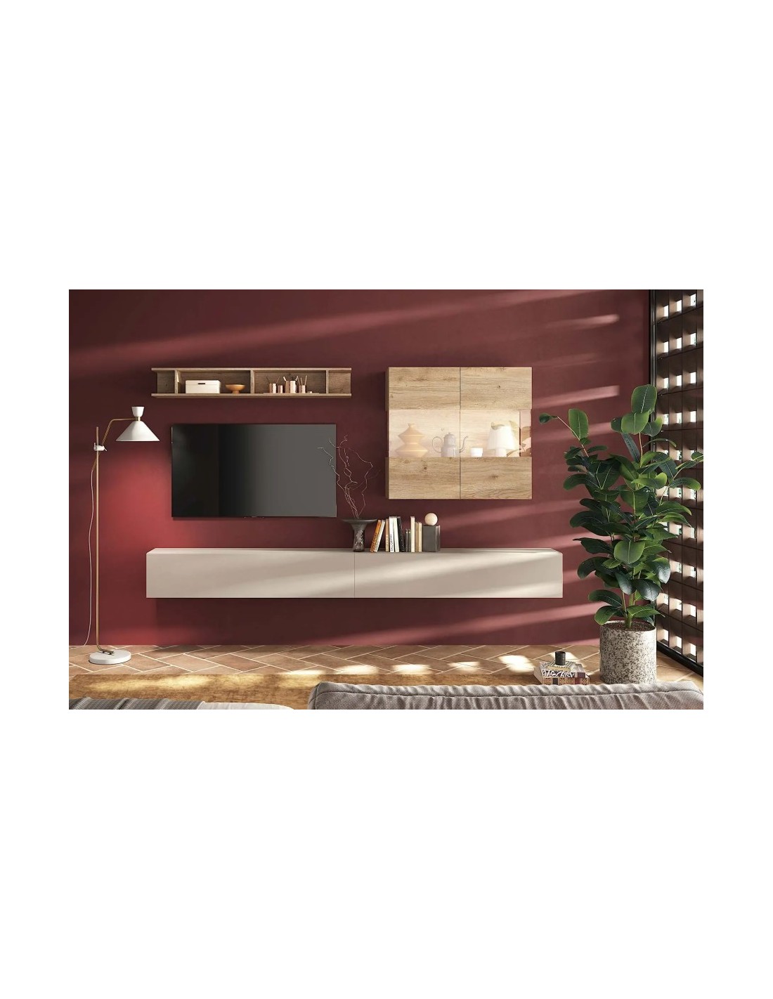 Parete soggiorno sospesa Cashmere - Rovere Kadiz 123