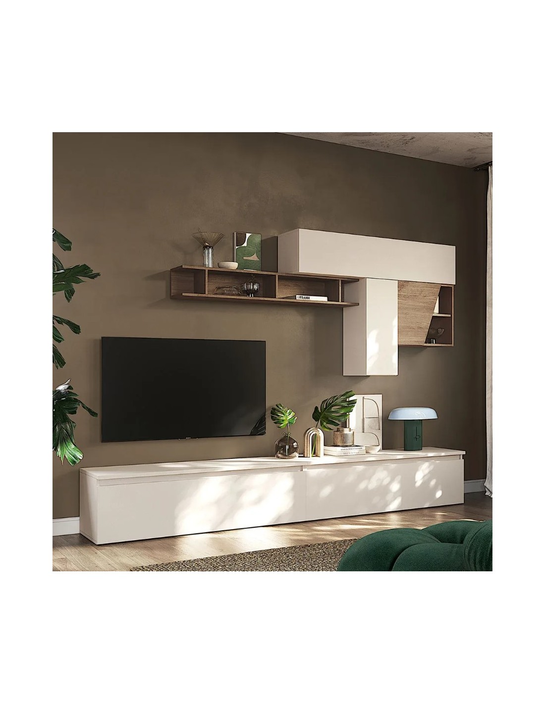 Questa parete ha un design moderno ed estremamente versatile, adatto a qualsiasi stile di arredamento.