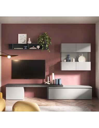 Parete soggiorno attrezzata sospesa.