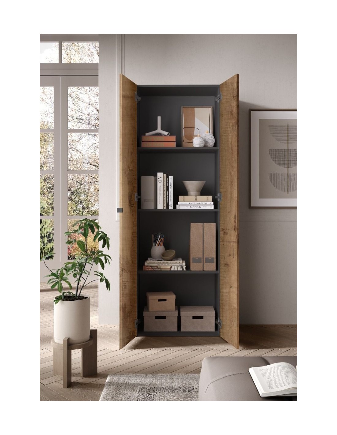 Il mobile è pratico è versatile, dotato di 2 ripiani interni con scomparti alti e capienti, ideale per riporre anche i documenti più voluminosi.