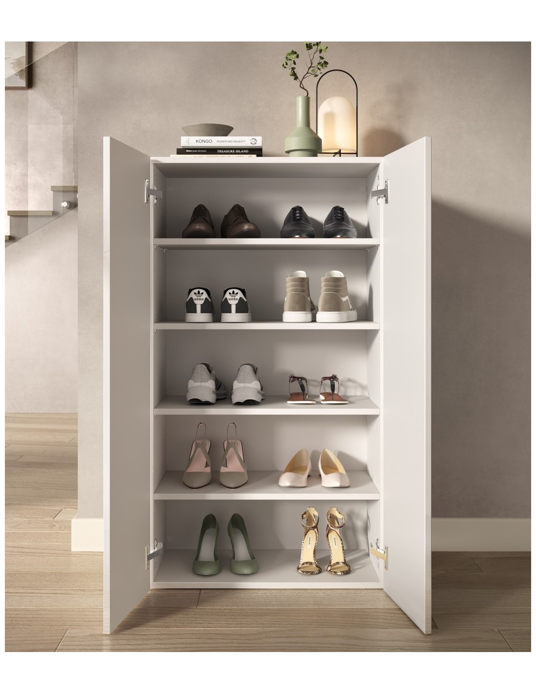 L' armadio multiuso è pratico e funzionale, adatto per posizionare in modo ordinato le scarpe grazie ai numerosi scomparti interni, spaziosi e capienti.