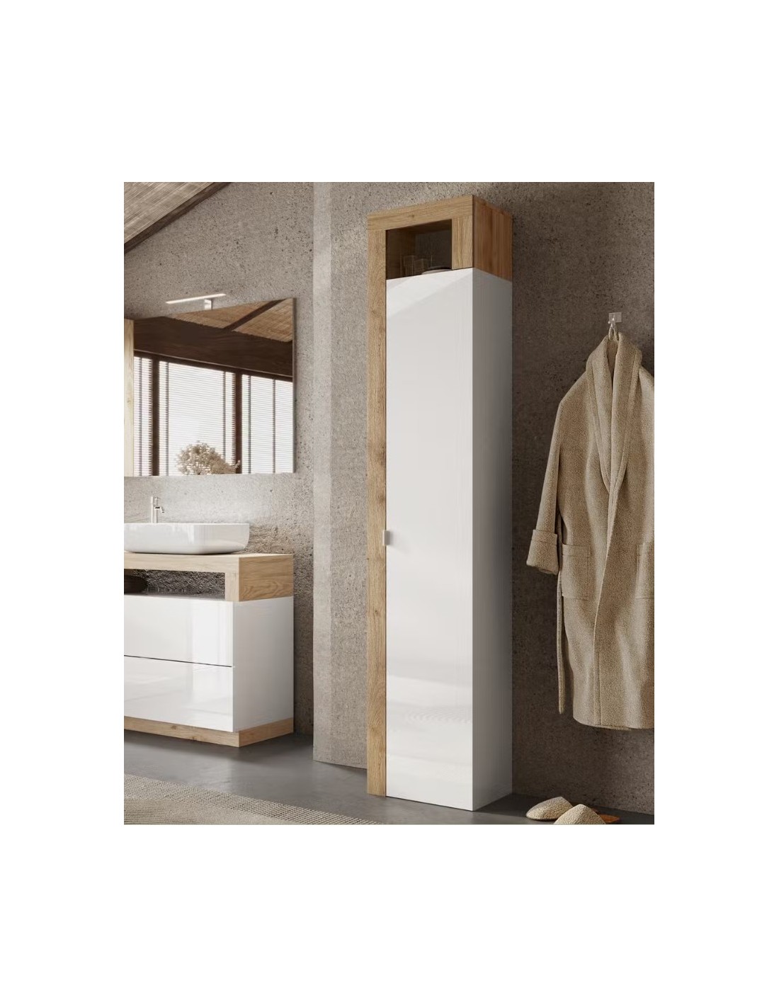 Armadio alto e stretto 1 anta Bianco laccato/Rovere cm 35 x 35 x 188 H