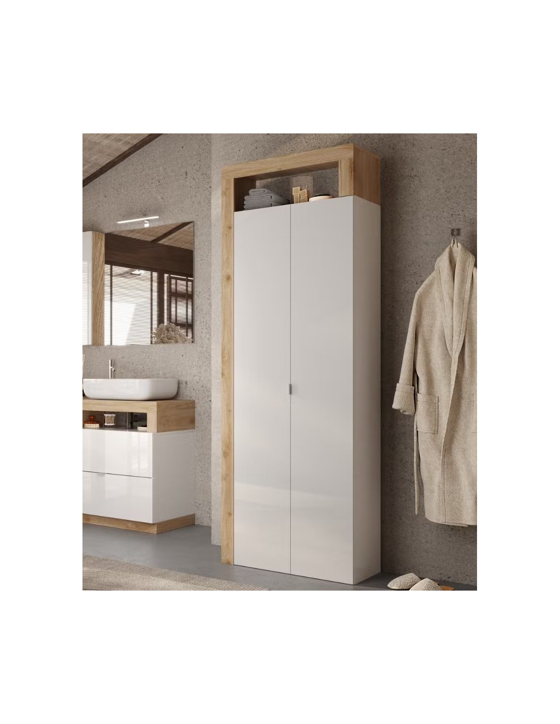 Armadio alto e stretto da bagno 1 anta - 1 vano superiore.