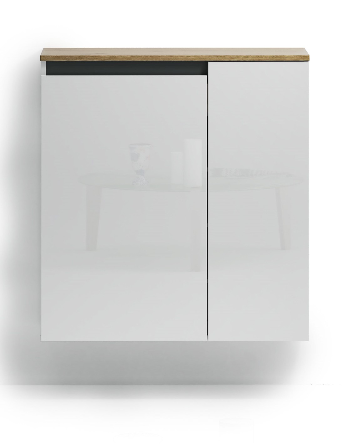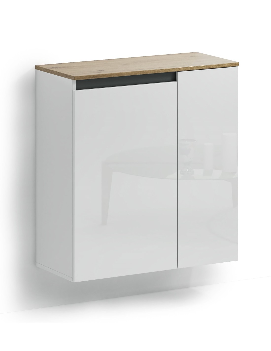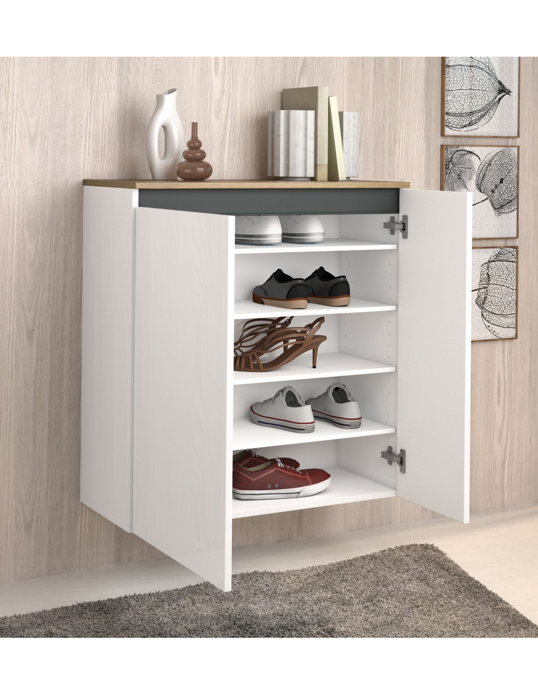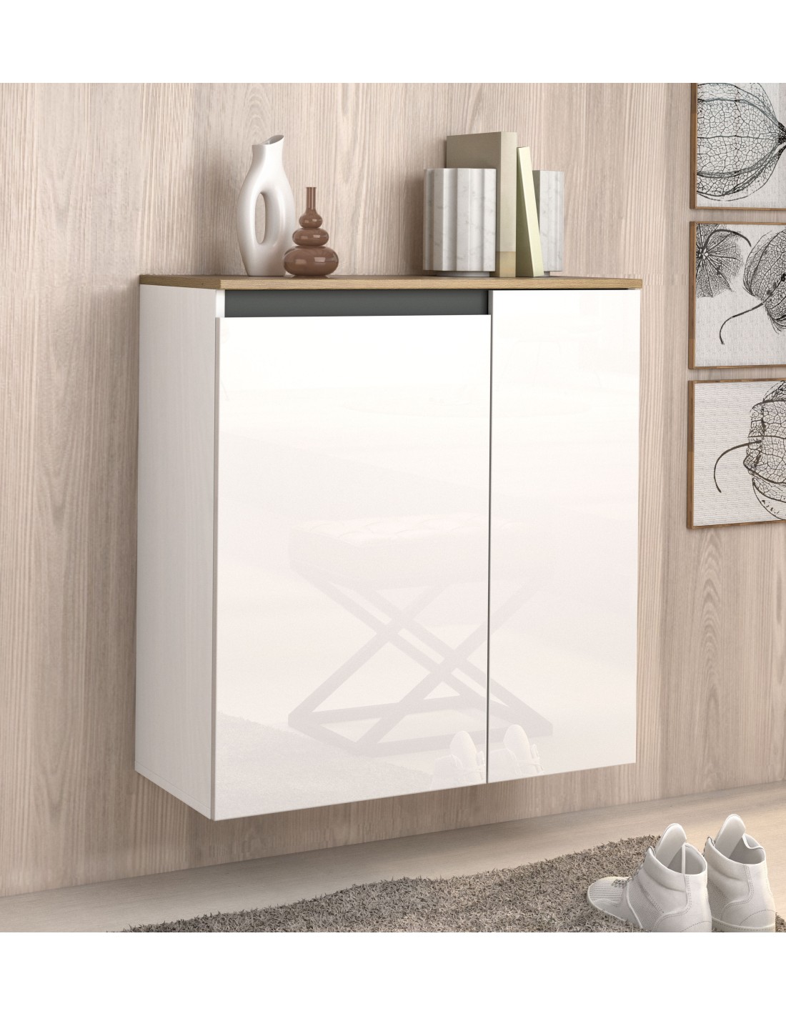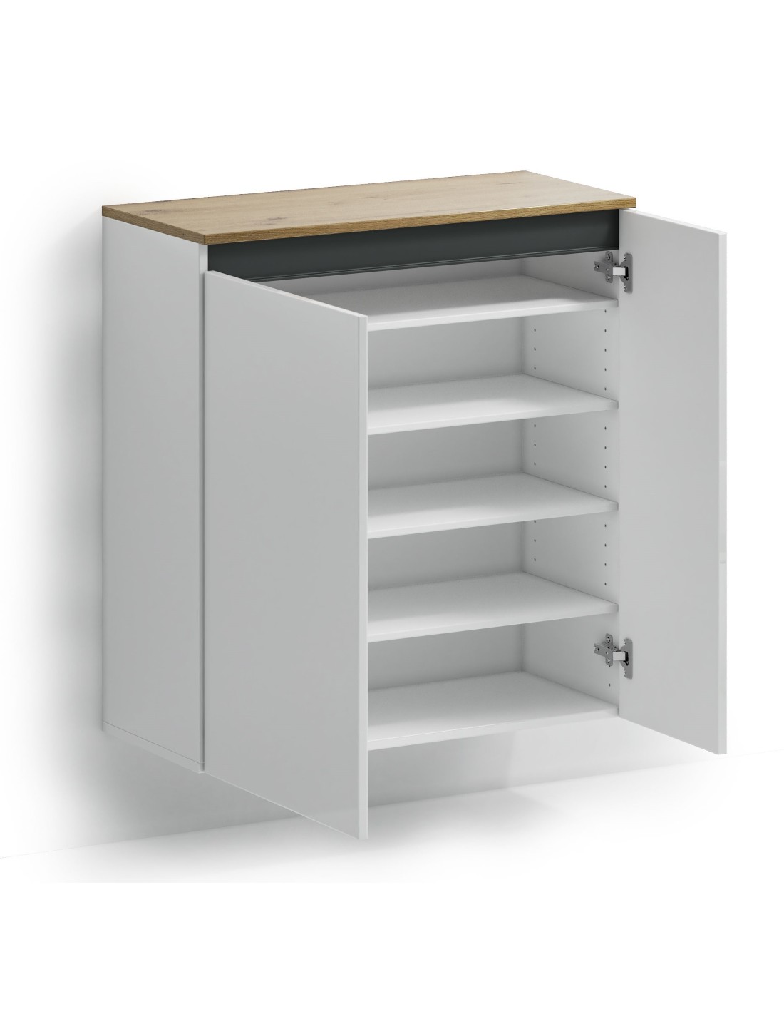 Scarpiera sospesa 2 ante Bianco lucido/Rovere artisan/Antracite