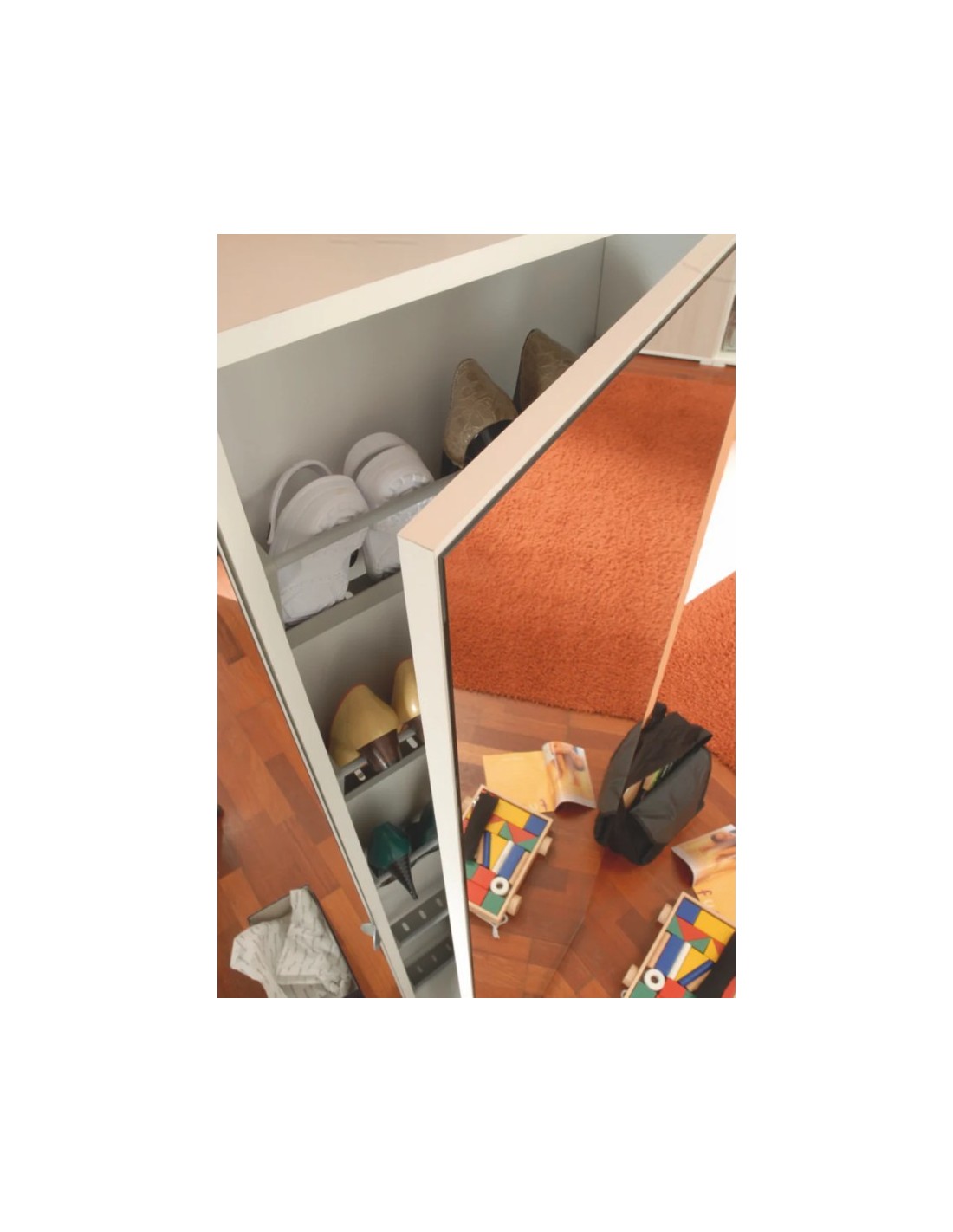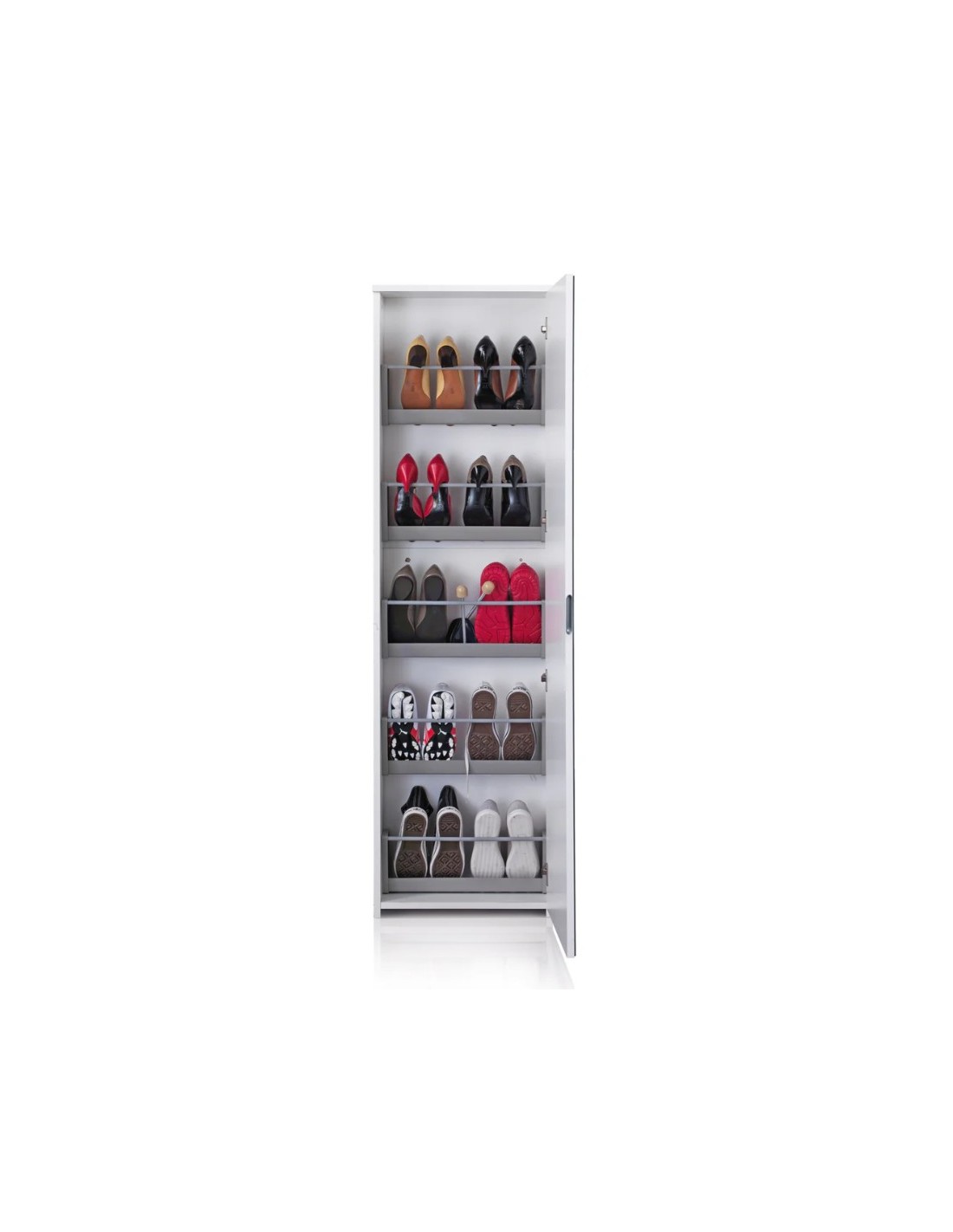 -01 Scarpiera 1 anta (reversibile) con 07 ripiani interni regolabili.