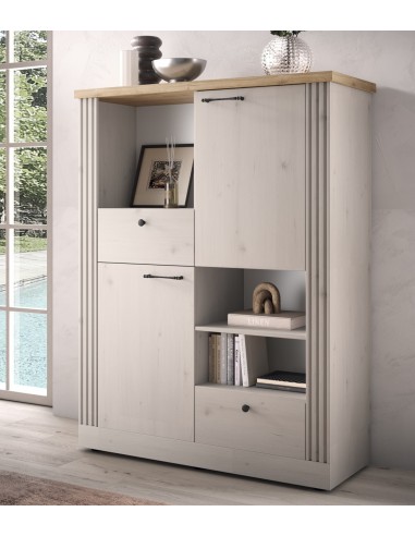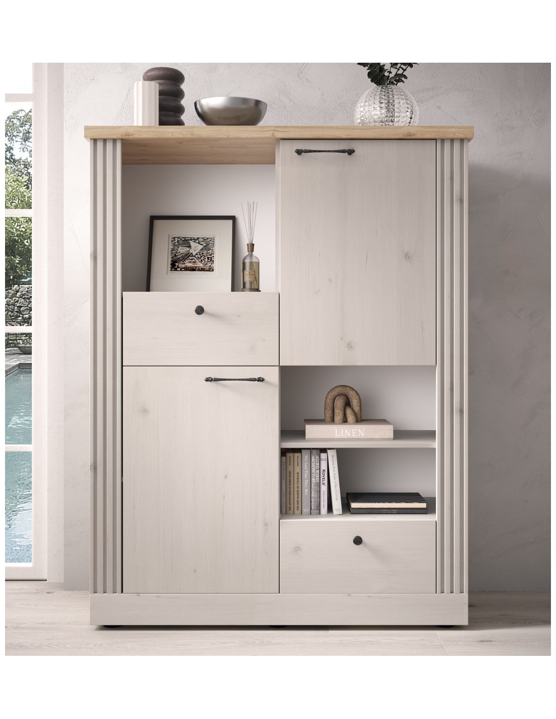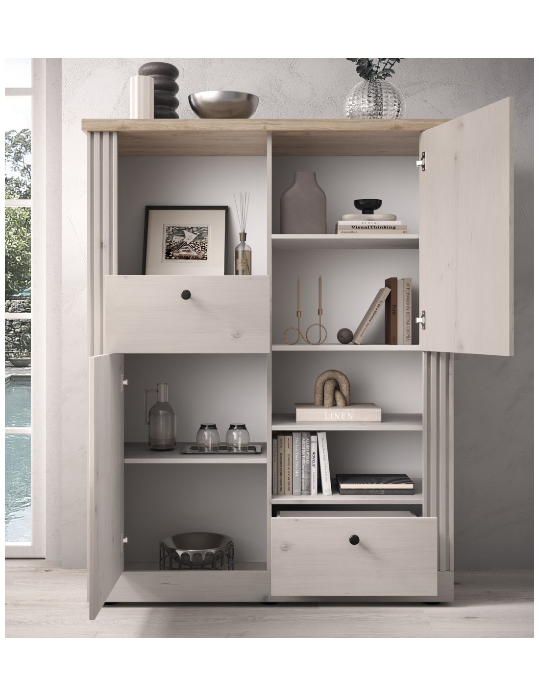 Madia alta 2 ante - 2 cassetti con vani a giorno Rovere meringa/Rovere kadiz