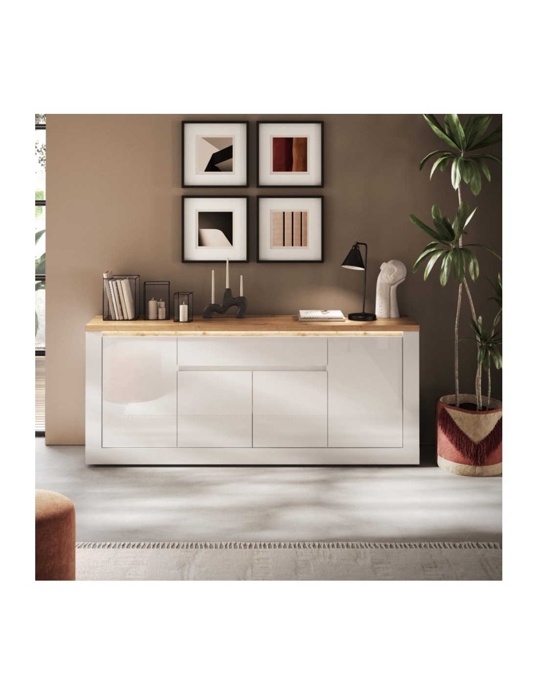 Madia 4 ante - 1 cassetto Capri Bianco laccato/Rovere kadiz