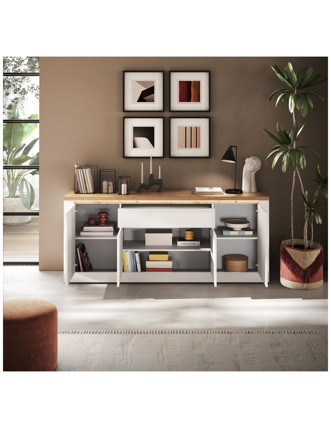 Gli spazi interni sono capienti, rendendo la madia molto funzionale e versatile.