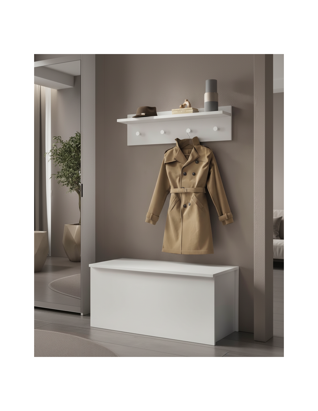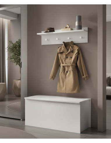 Mobile ingresso panca + mensola appendiabiti Bianco venato opaco