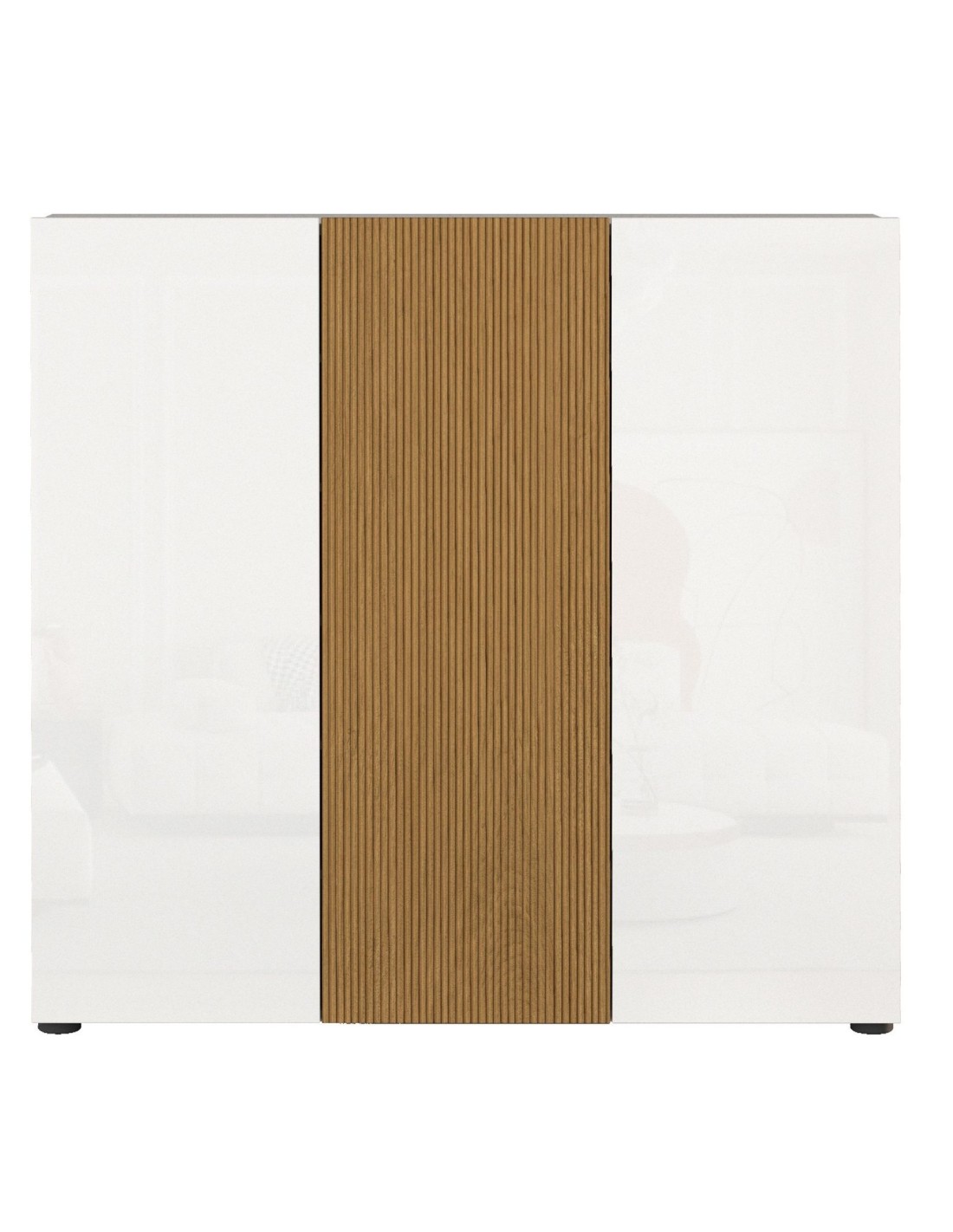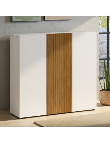 Colore: Bianco laccato (Ante laterali) / Rovere rigato (Ante centrali).