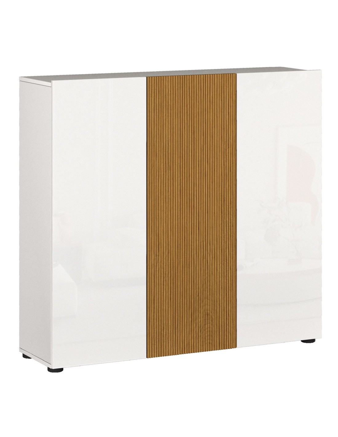 Colore: Bianco laccato lucido (04 Ante laterali) / Rovere rigato (01 Anta centrale).