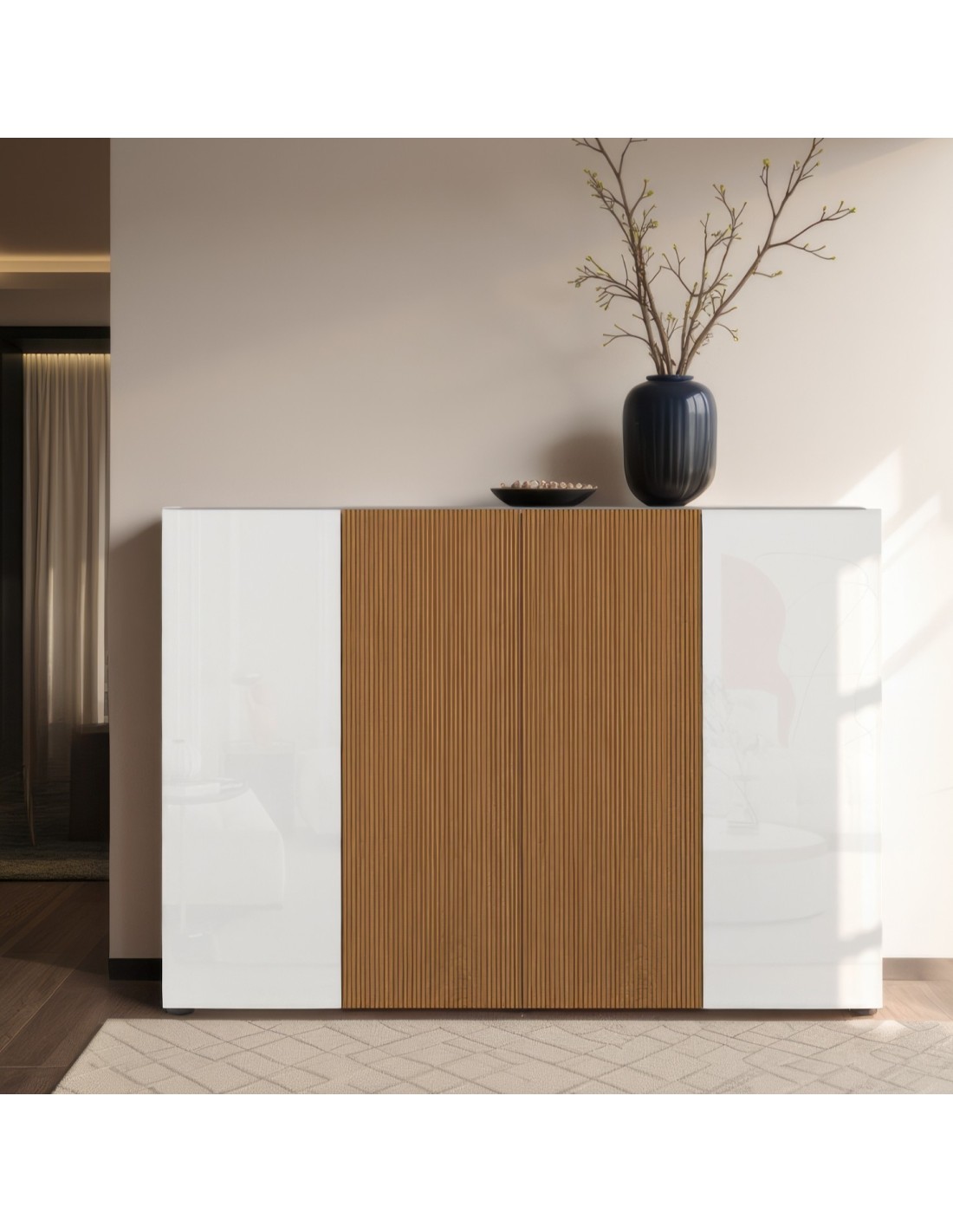 Colore: Bianco laccato lucido (04 Ante laterali) / Rovere rigato (01 Anta centrale).