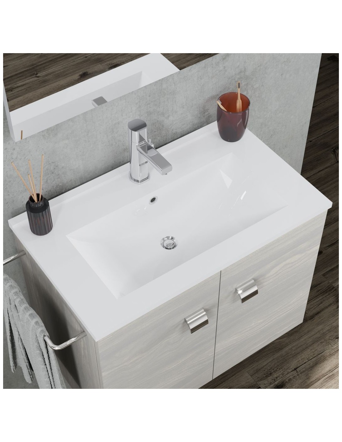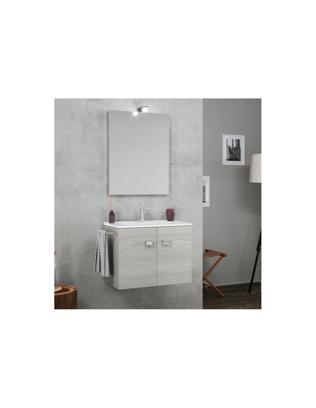 (Mobile + lavabo + specchio + led + porta asciugamani)