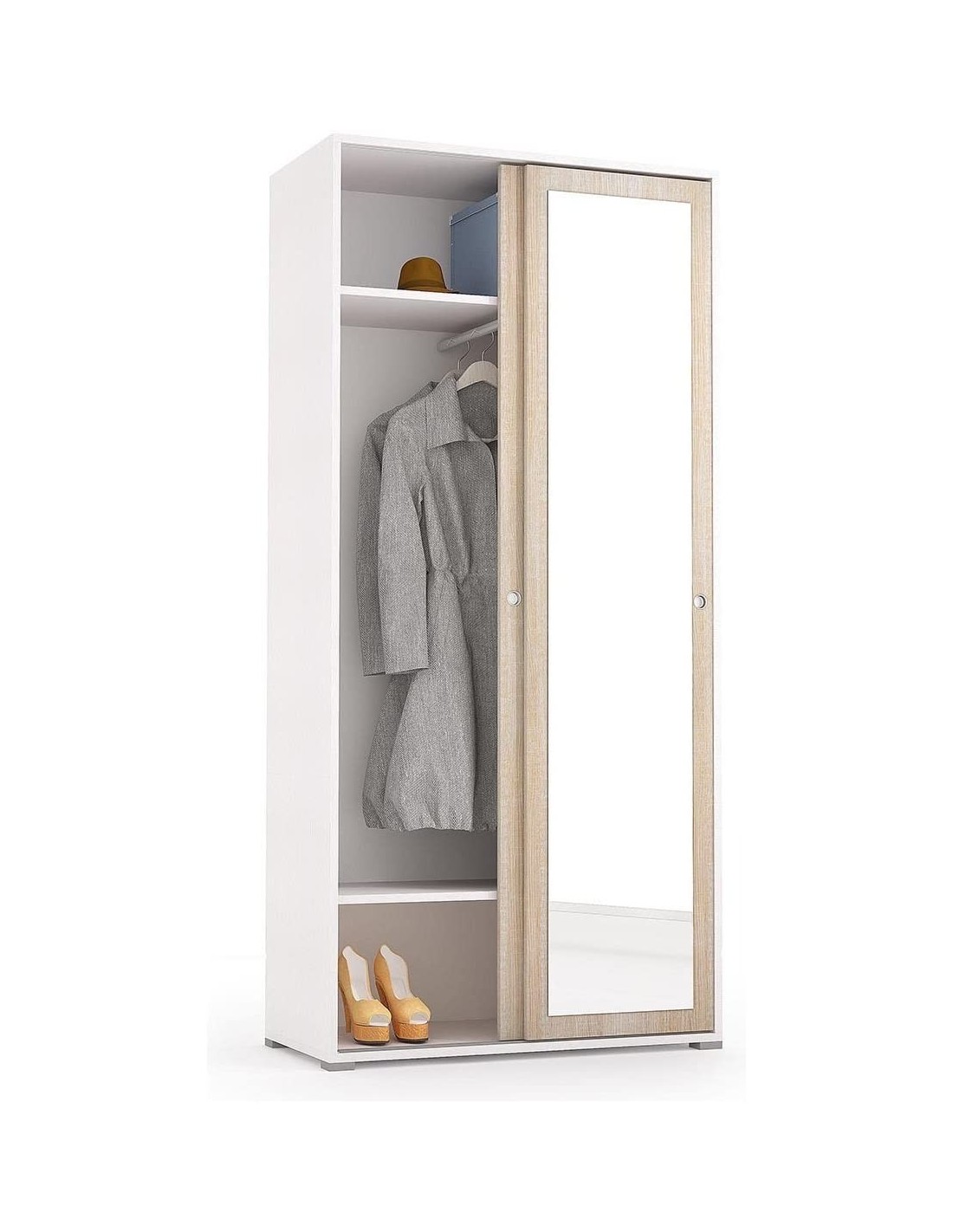 L'arredo riscopre l'eleganza con un armadio all'apparenza semplice,ma completo di due ripiani interni e un pratico tubo porta abiti.