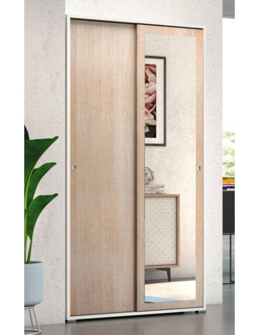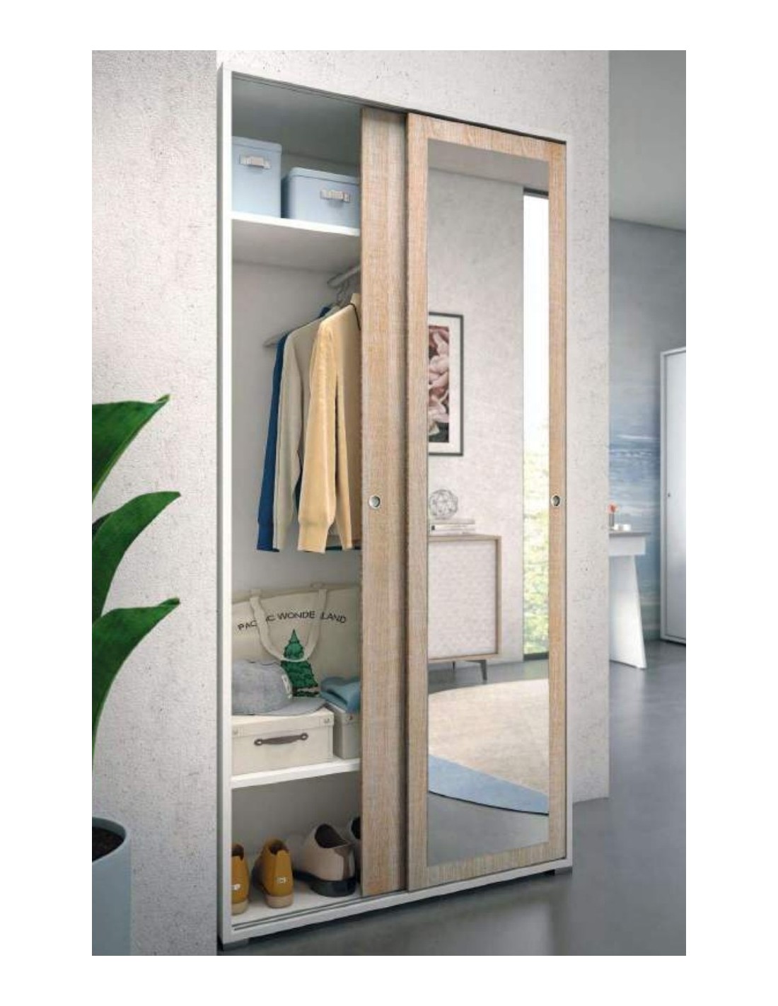Armadio 2 ante scorrevoli con specchio.