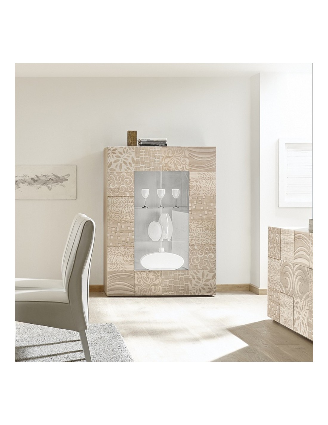 Porta TV 1 anta - 1 cassetto - 1 vano serigrafato con ripiano in vetro.