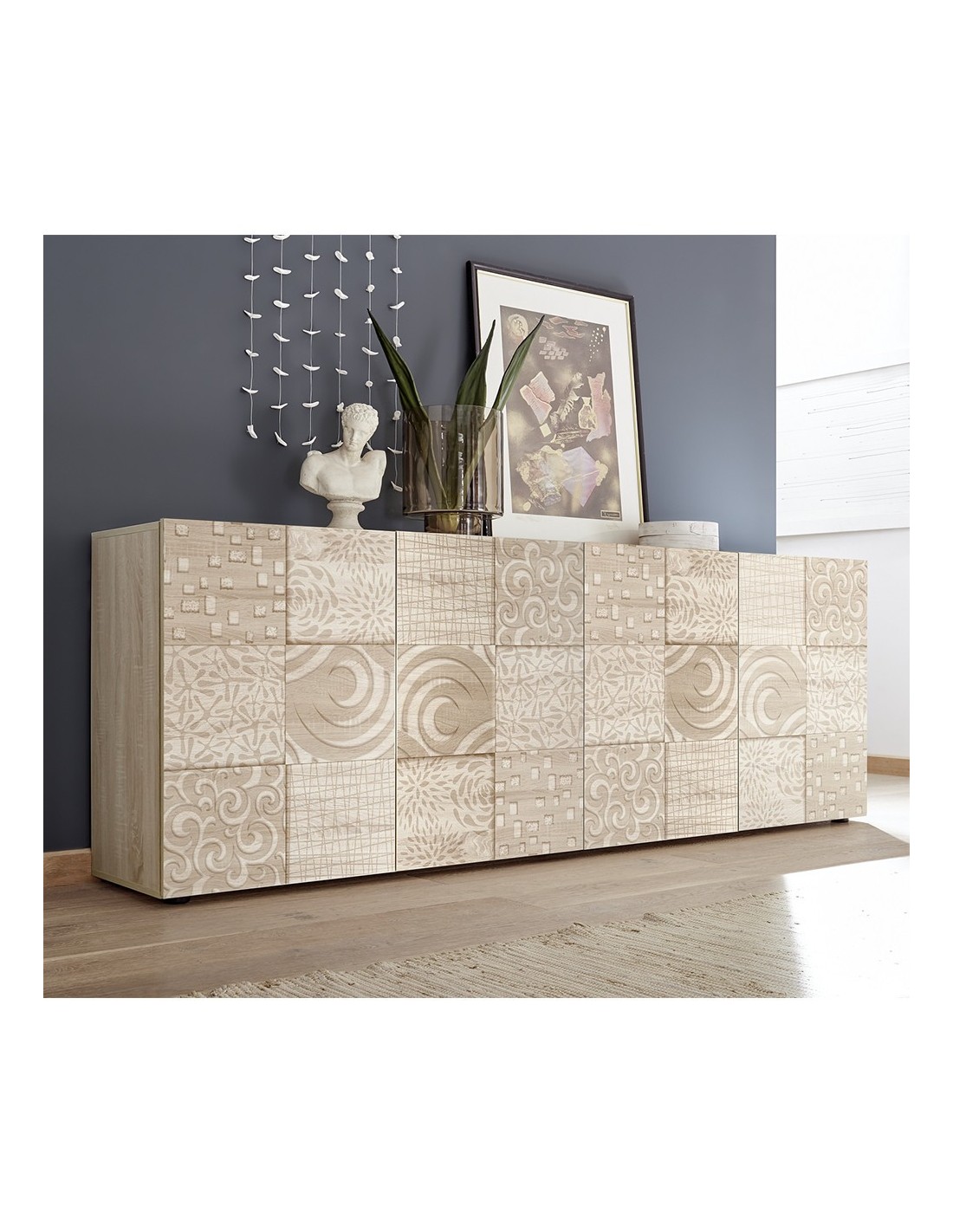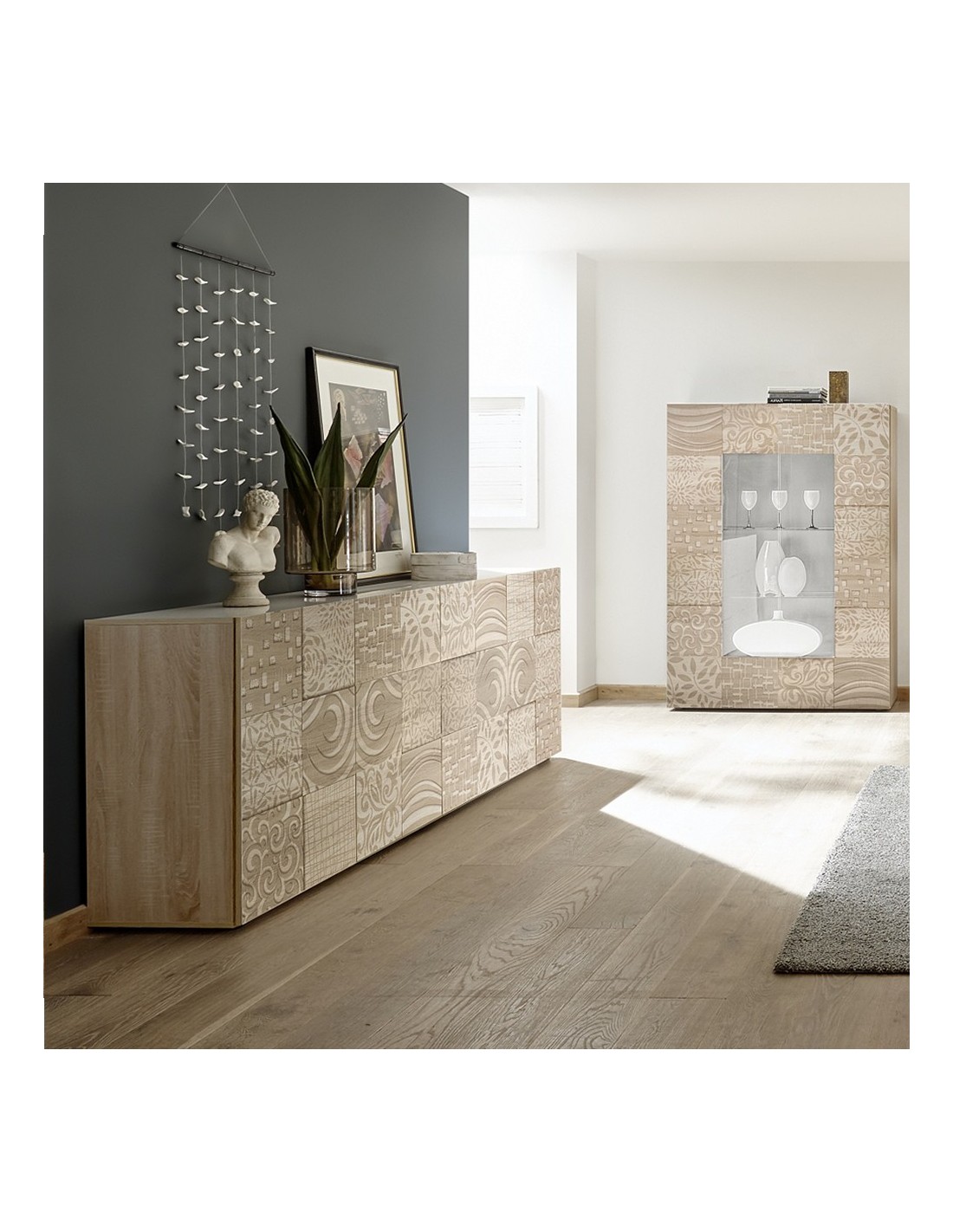 Credenza 2 ante 2 cassetti con vano a giorno colore Rovere.