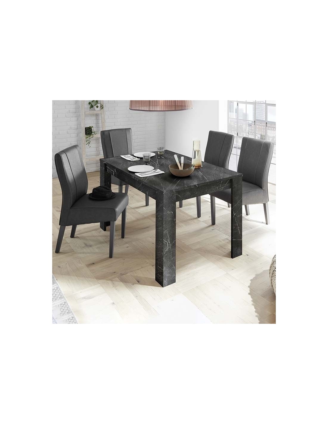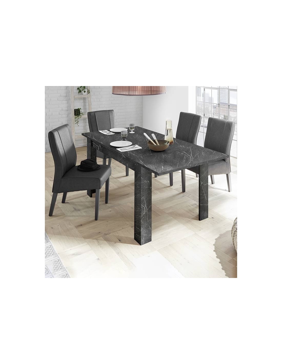 Design essenziale e raffinato, impreziosito dall'effetto marmo nero.