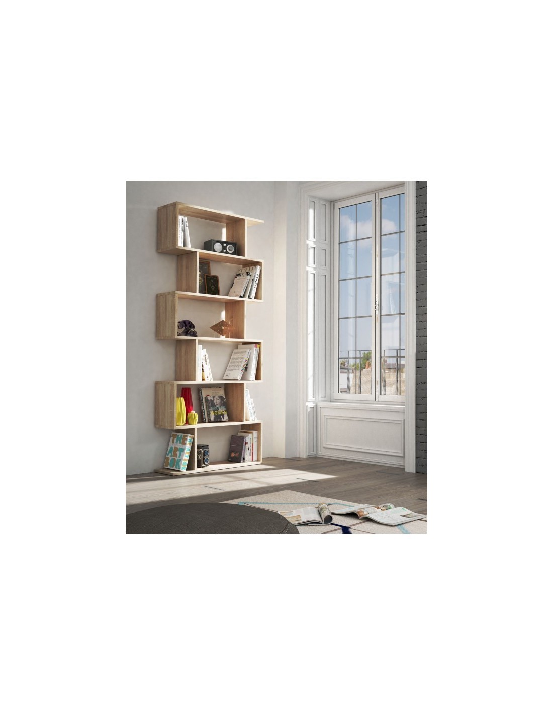 Libreria dal design moderno e minimale,adatta per arredare qualsiasi ambiente,in poco spazio,grazie ai suoi 6 ripiani,si possono riporre oggetti arredando con gusto e semplicità.