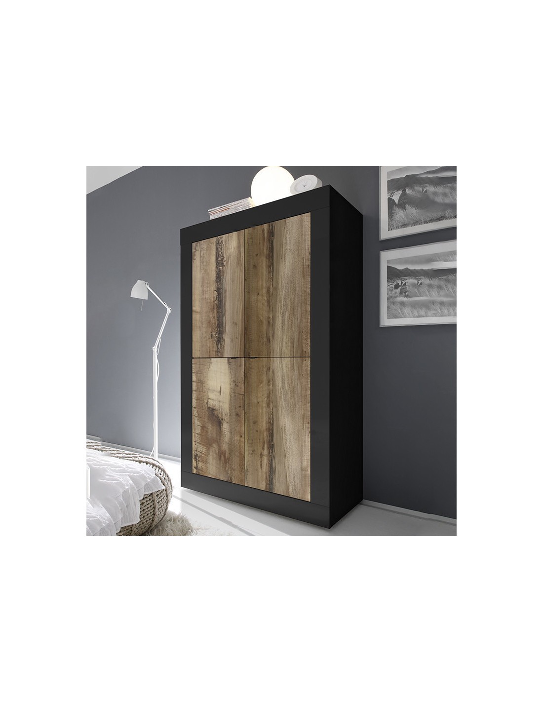 Colore: Bianco laccato lucido/Rovere kadiz.