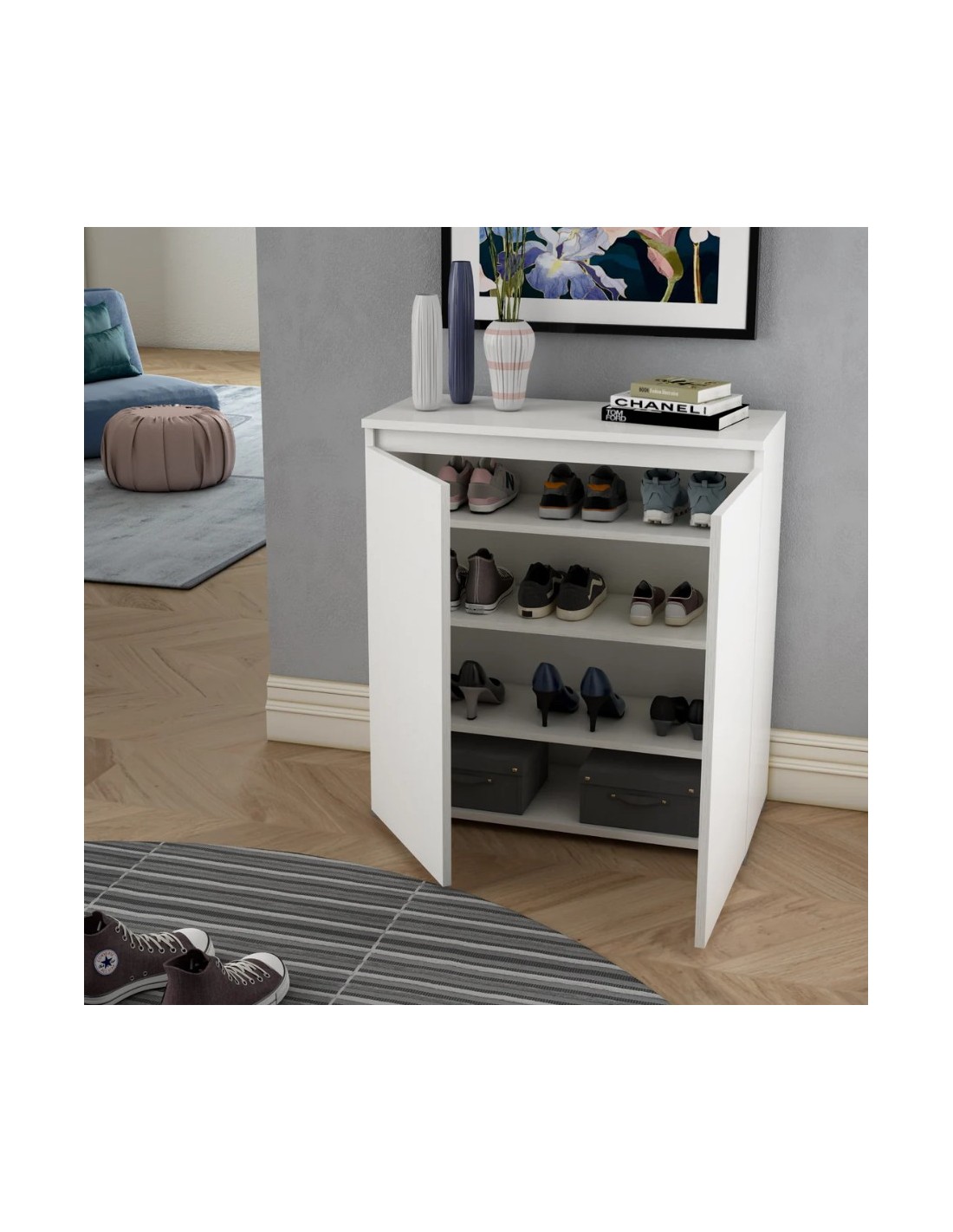 Mobile multiuso scarpiera 2 ante basso Bianco