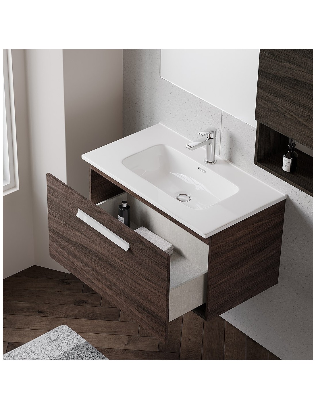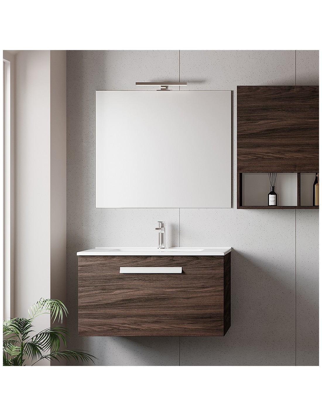 Mobile bagno sospeso 1 cassettone 80 cm Olmo caffè (Specchio escluso)