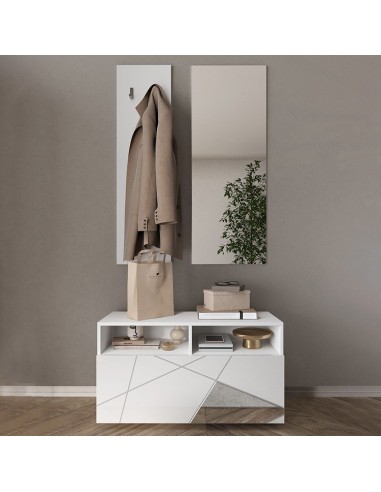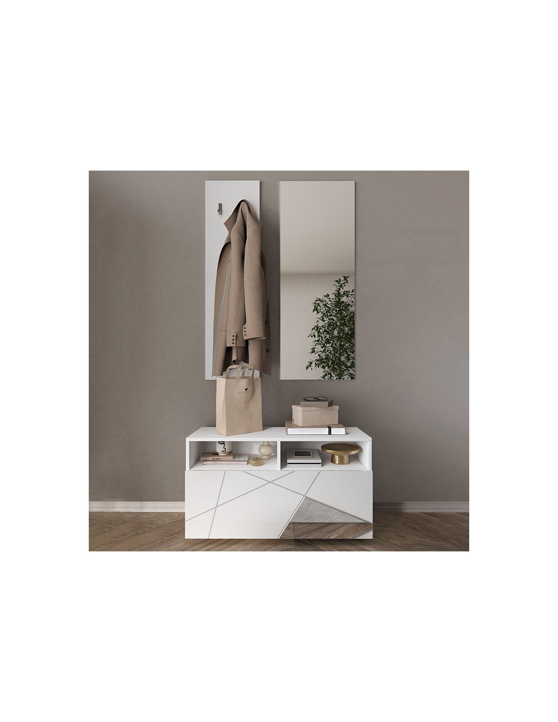 Mobile ingresso serigrafato con pannello appendiabiti e specchio Bianco laccato