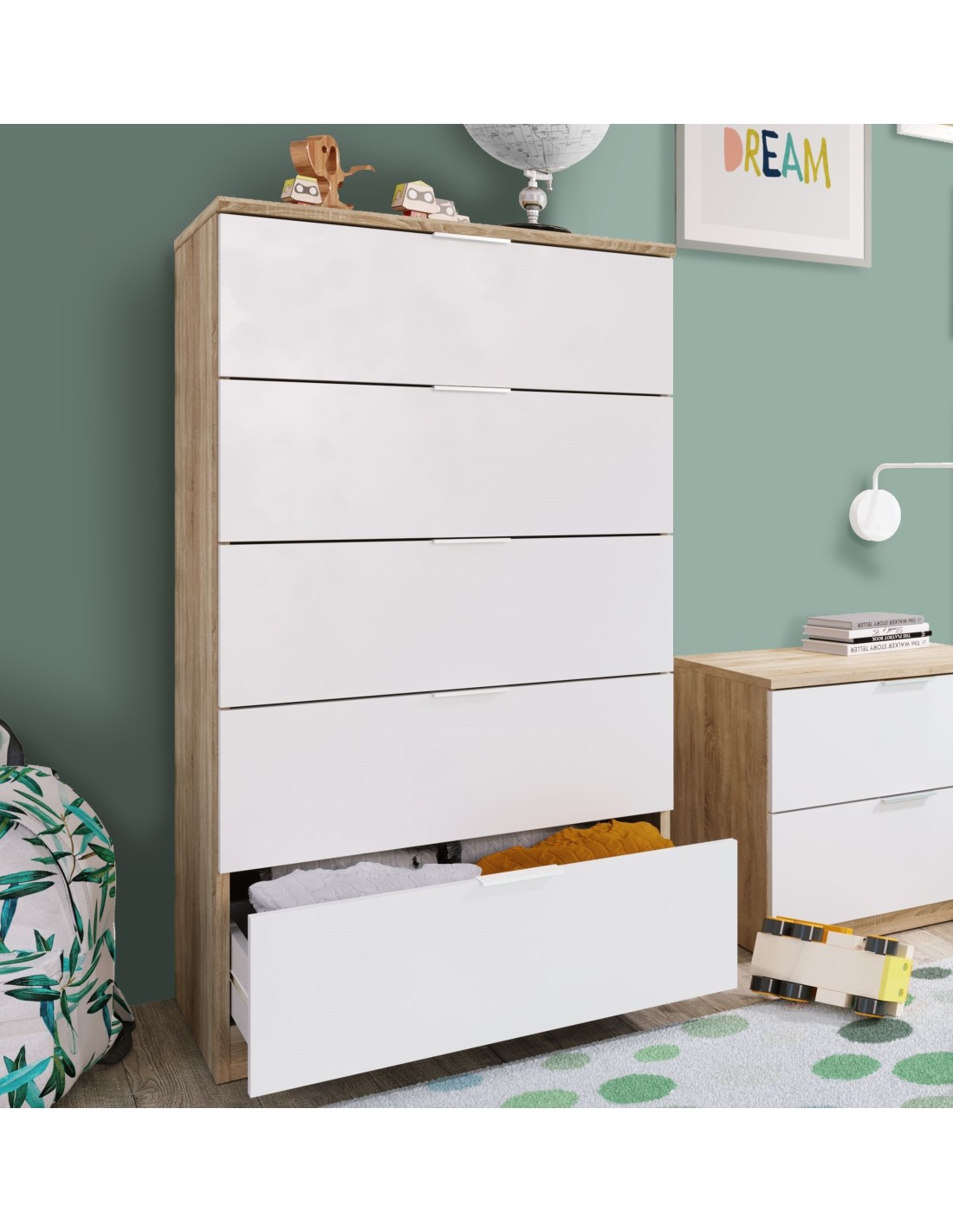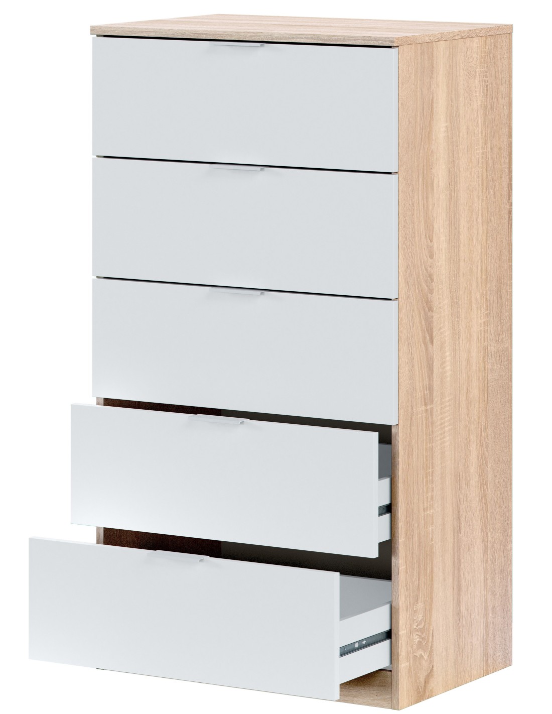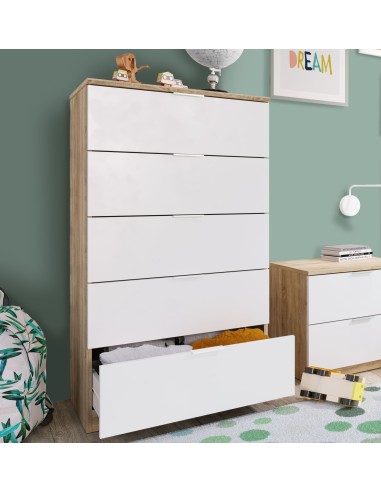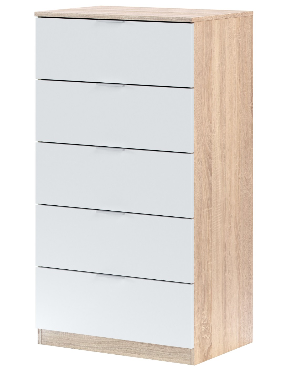 Cassettiera 5 cassetti Rovere / Bianco opaco
