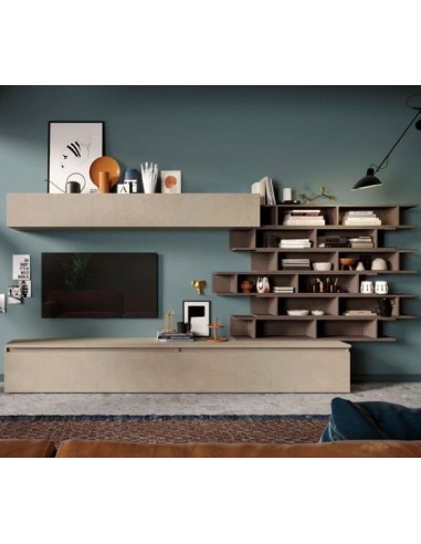 Parete attrezzata moderna Argilla - Bronzo con mensole sospese 13