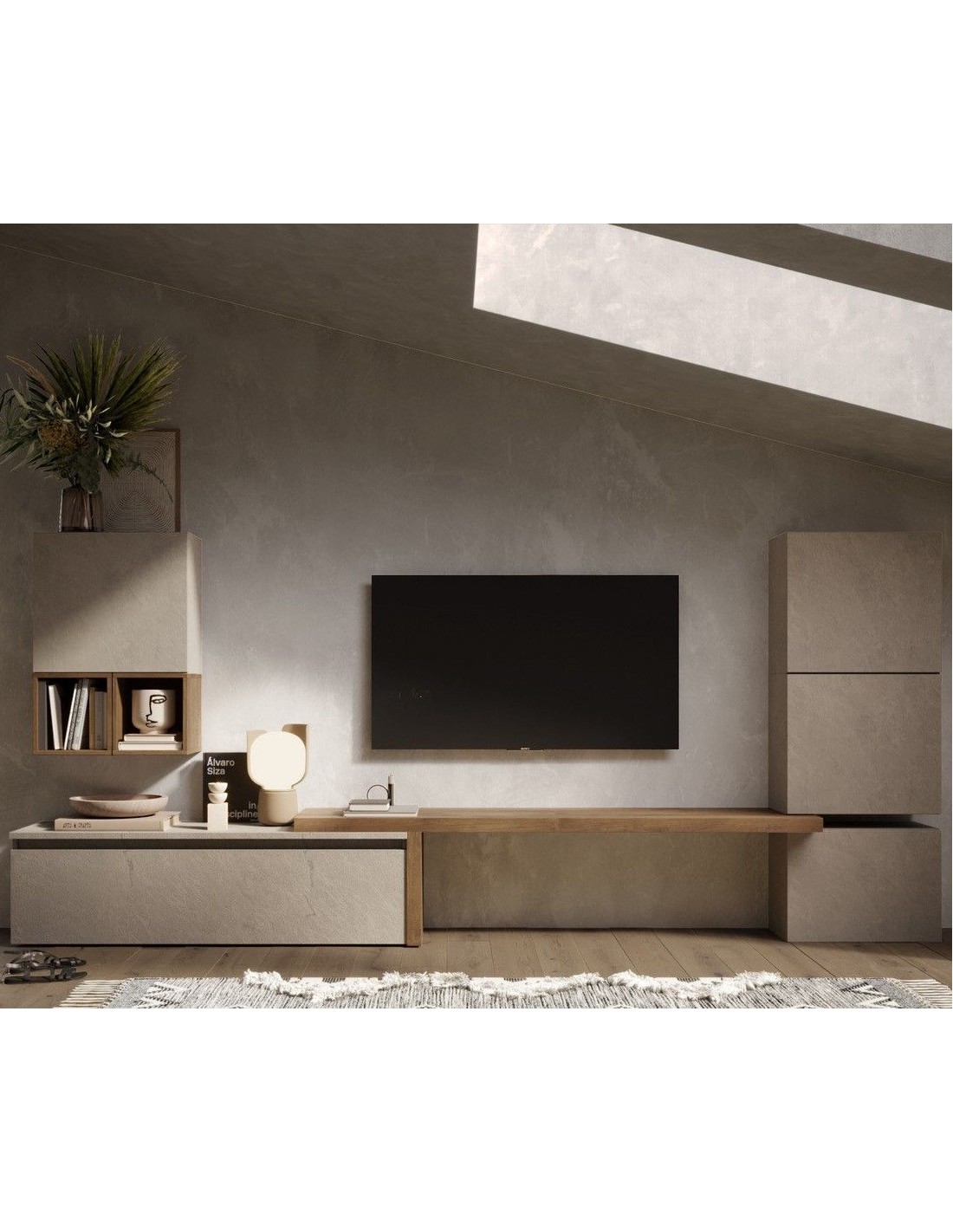 Parete soggiorno moderna con mensolone cubi e porta TV Argilla - Mercure 18