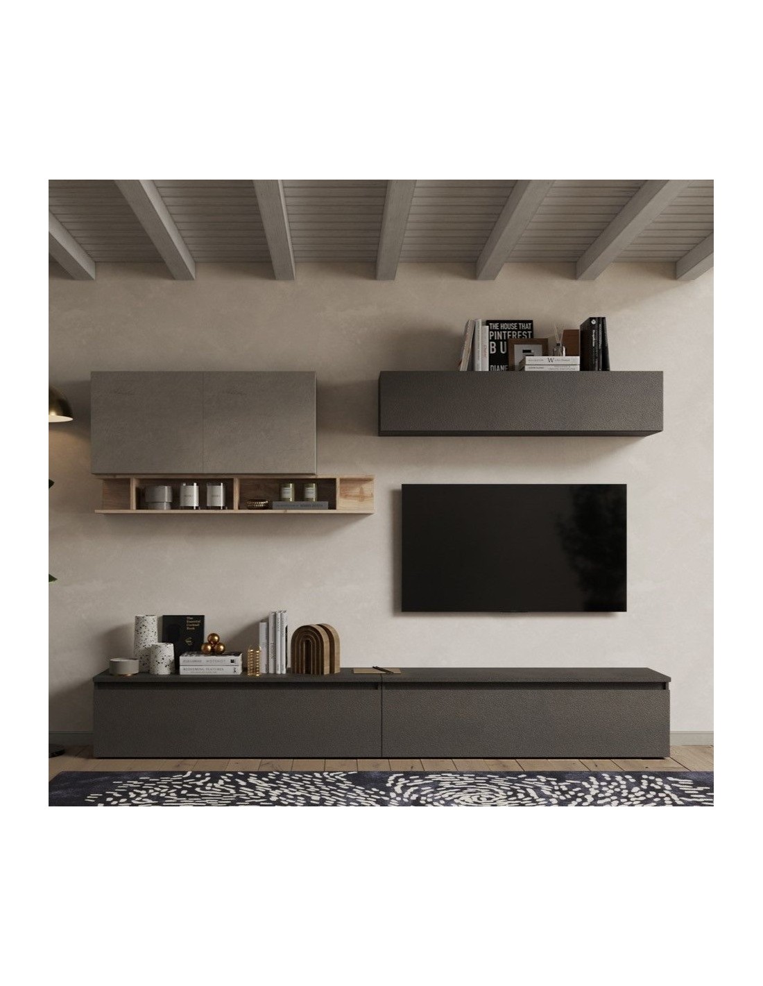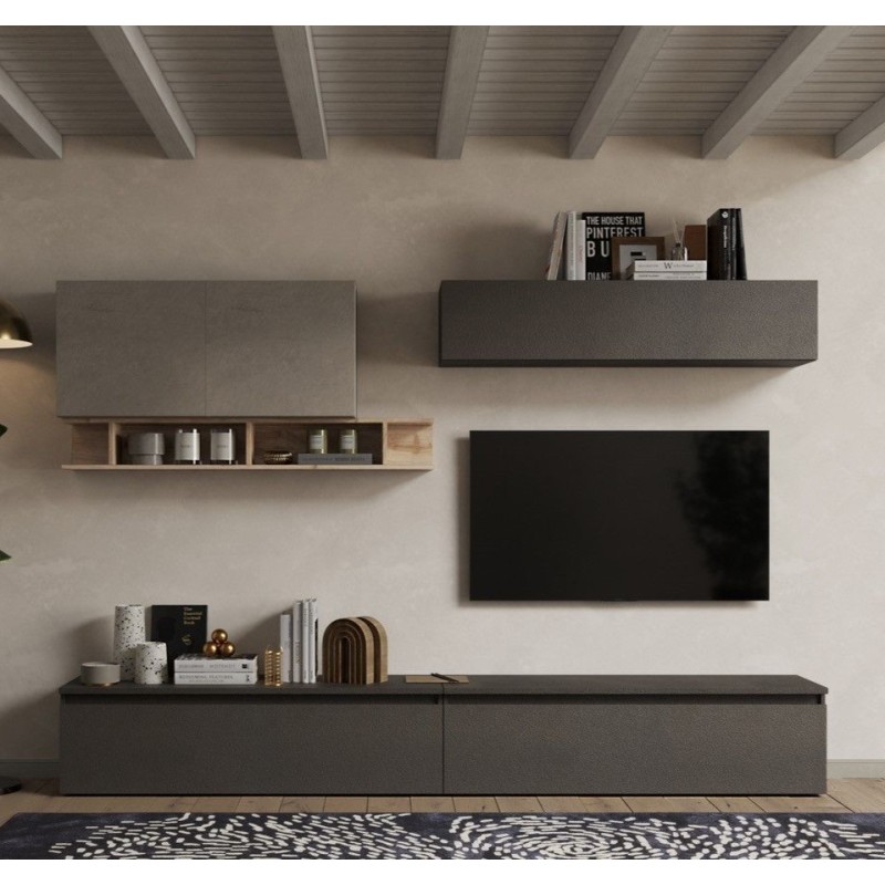 Parete soggiorno Lava - Argilla - Rovere Kadiz 27