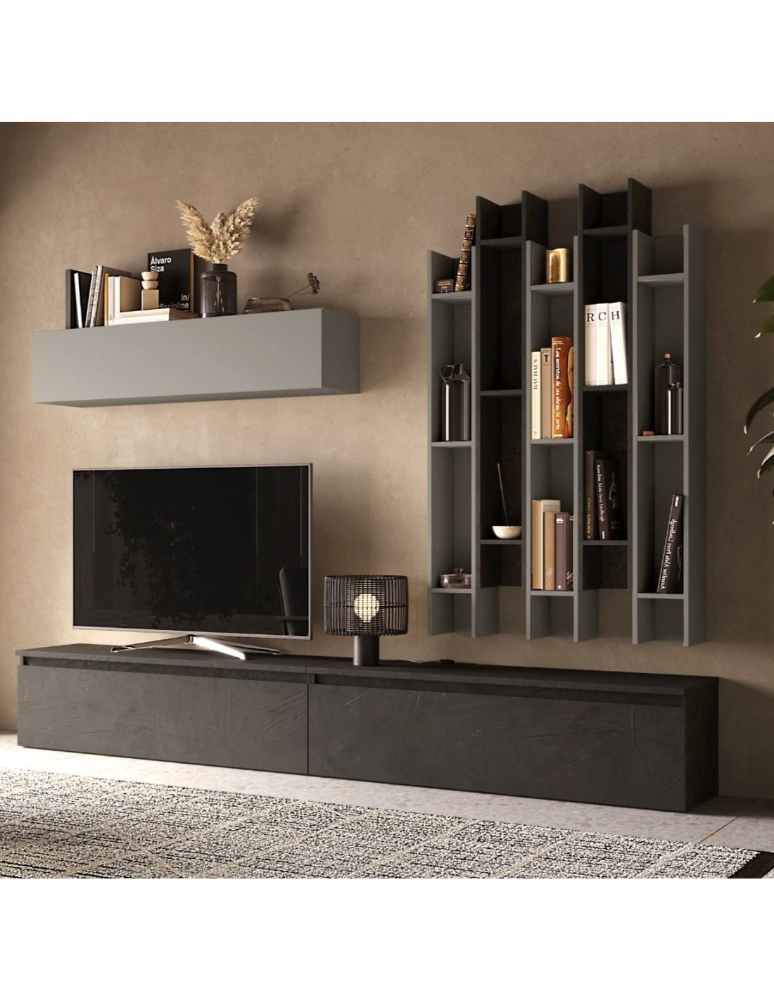 Parete soggiorno con mensole Piombo - Ardesia 30