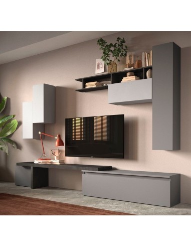 Parete attrezzata con mensolone TV Gesso - Ardesia - Piombo 33