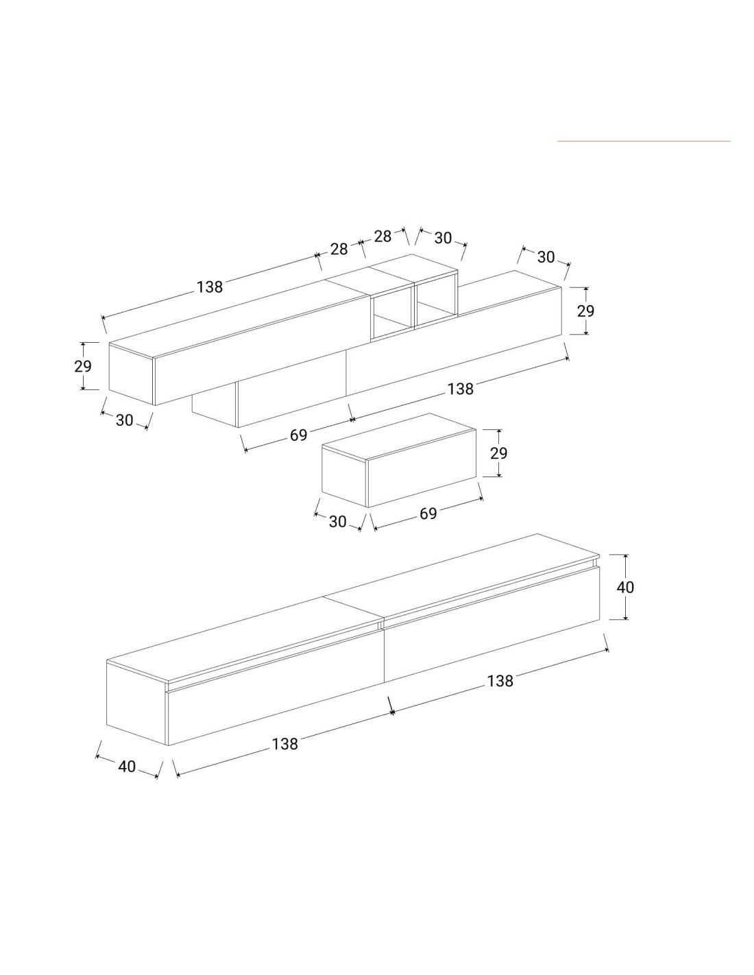 Porta TV 1 cassettone cm 138 x 40 x 40 H
