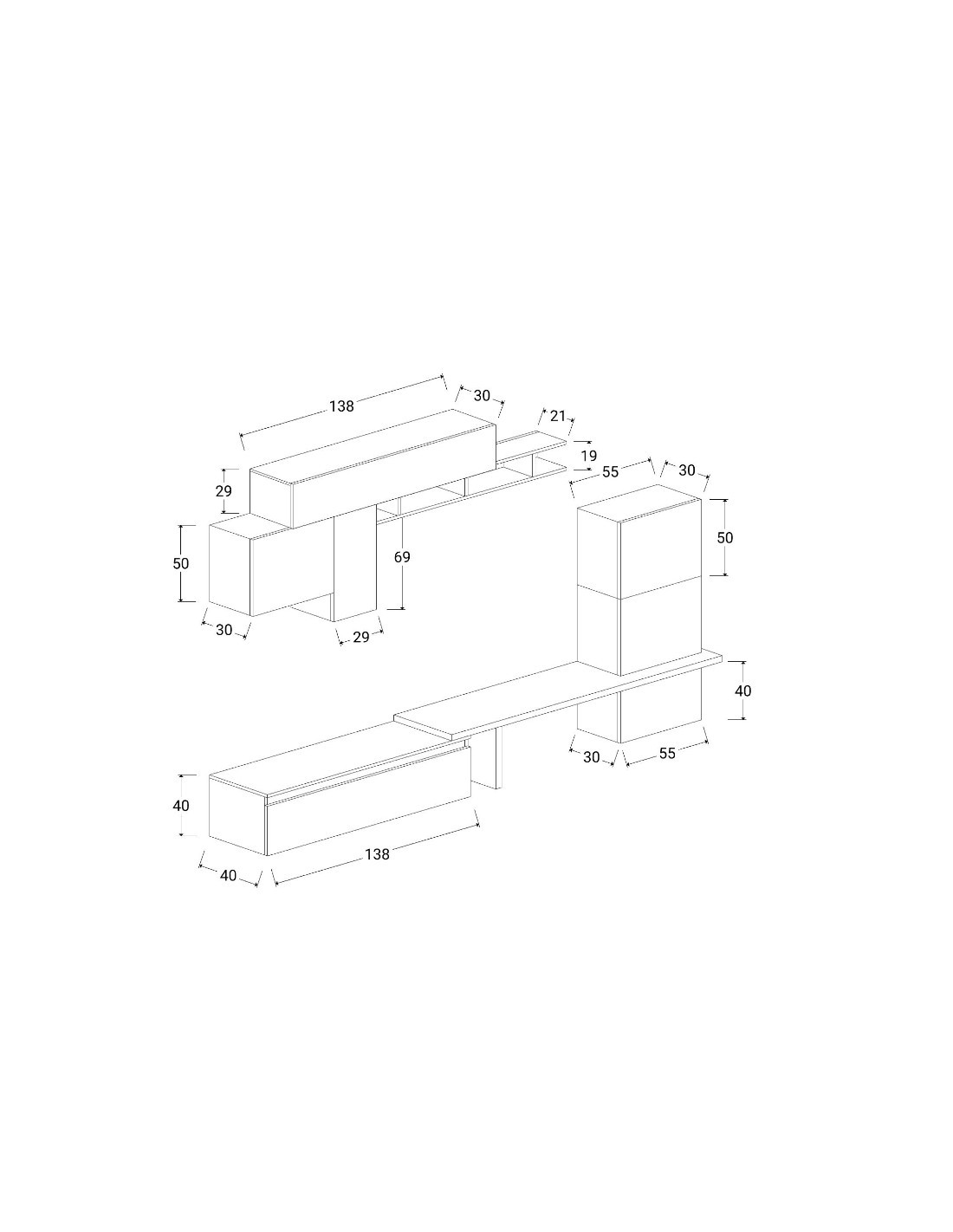 Dimensioni cm:(L 276 + (69 Sporgenza mensole sospese) x P 40 x H 17