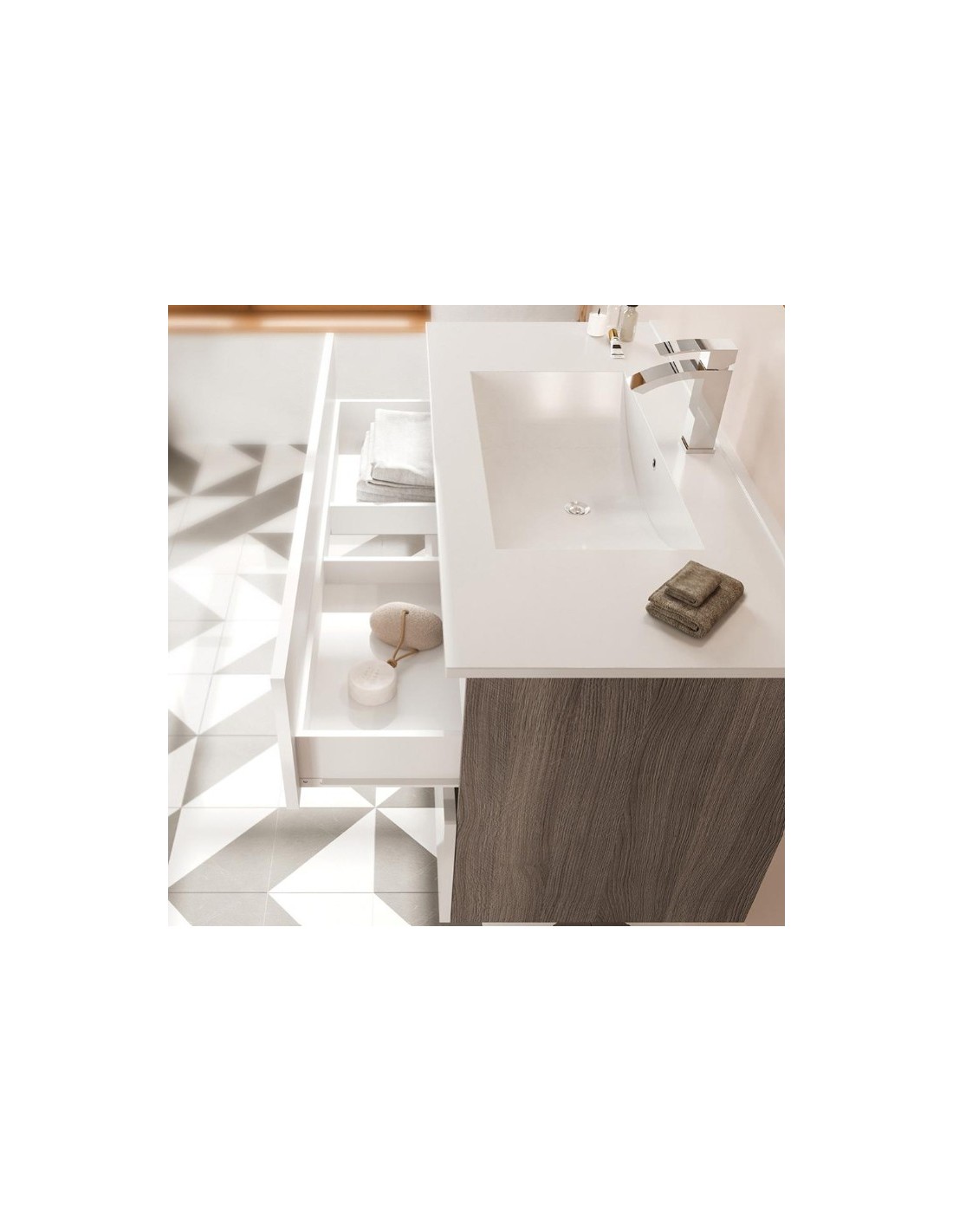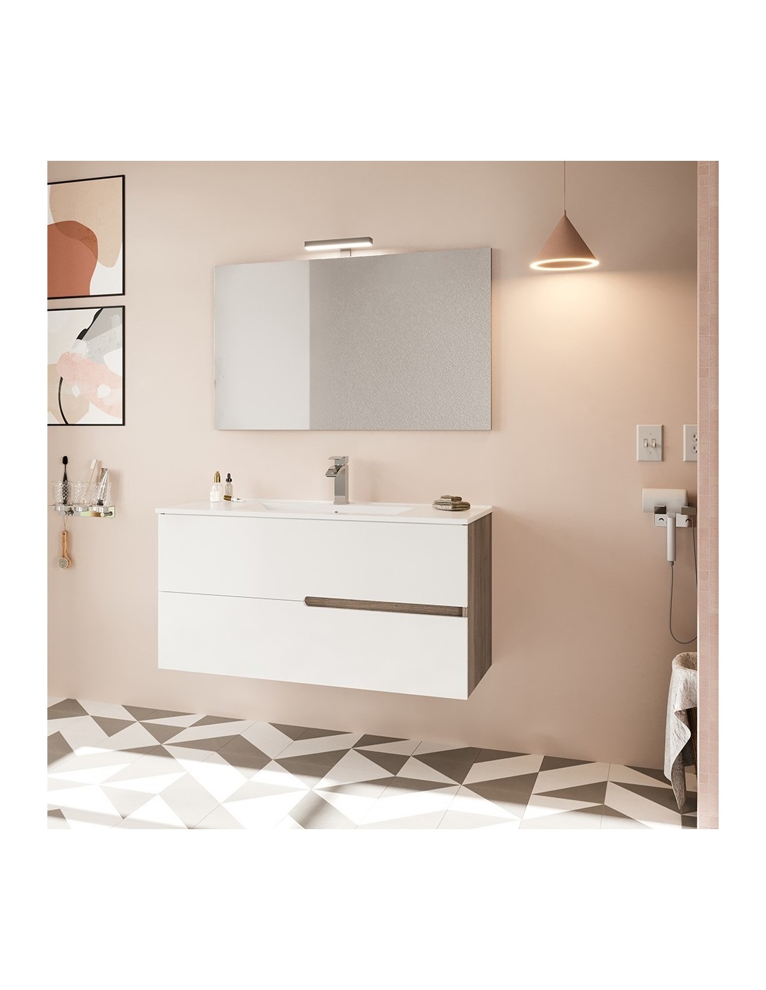 Mobile bagno 2 cassettoni con lavabo in ceramica + specchio + faretto.
