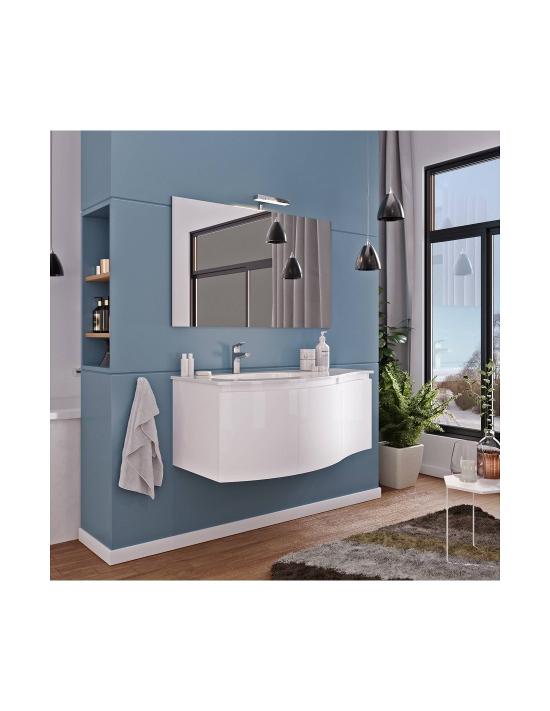 Mobile bagno sospeso cm 105 + specchio + faretto Bianco laccato