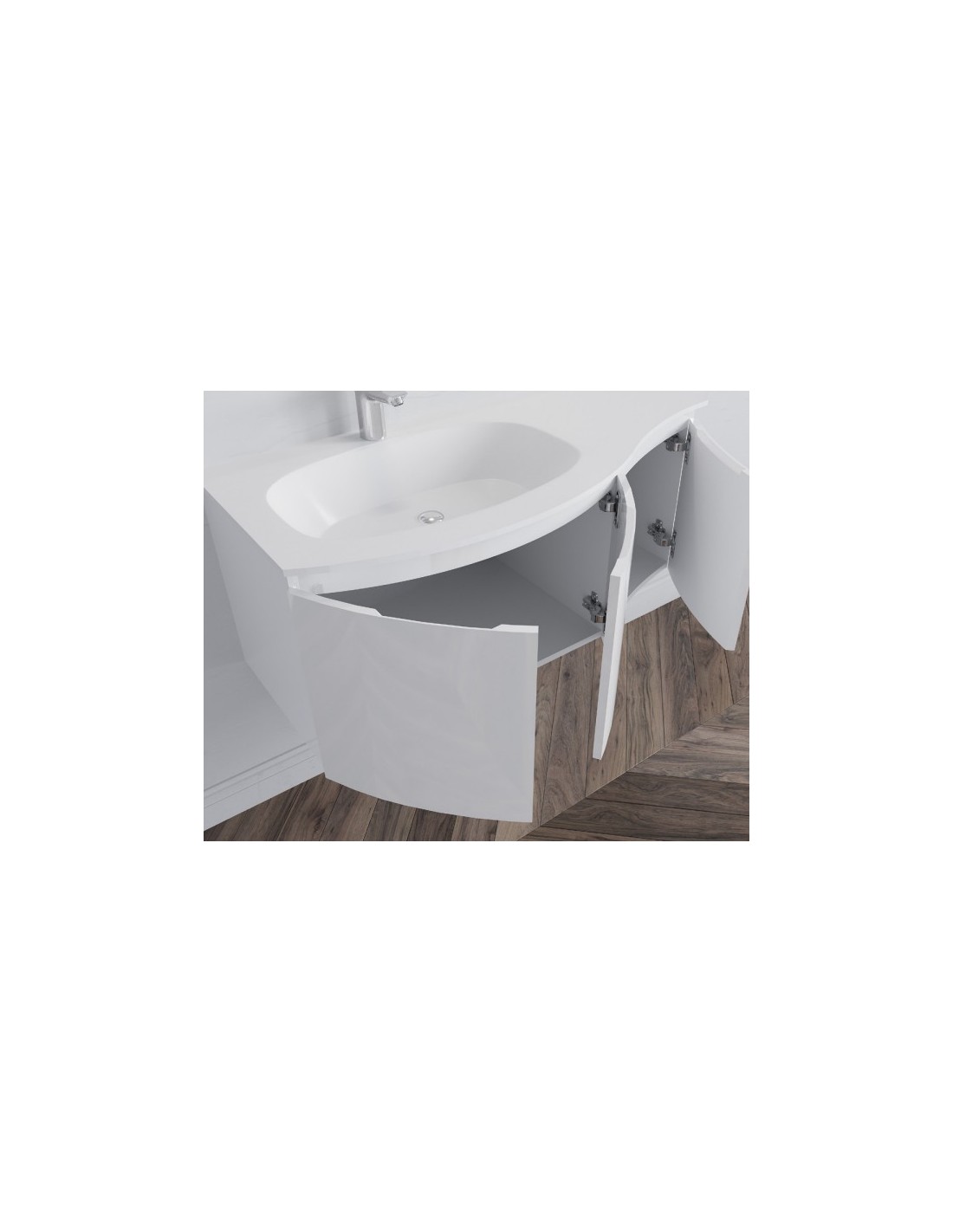 Mobile bagno sospeso 3 ante con lavabo in resina sagomato + specchio + faretto.