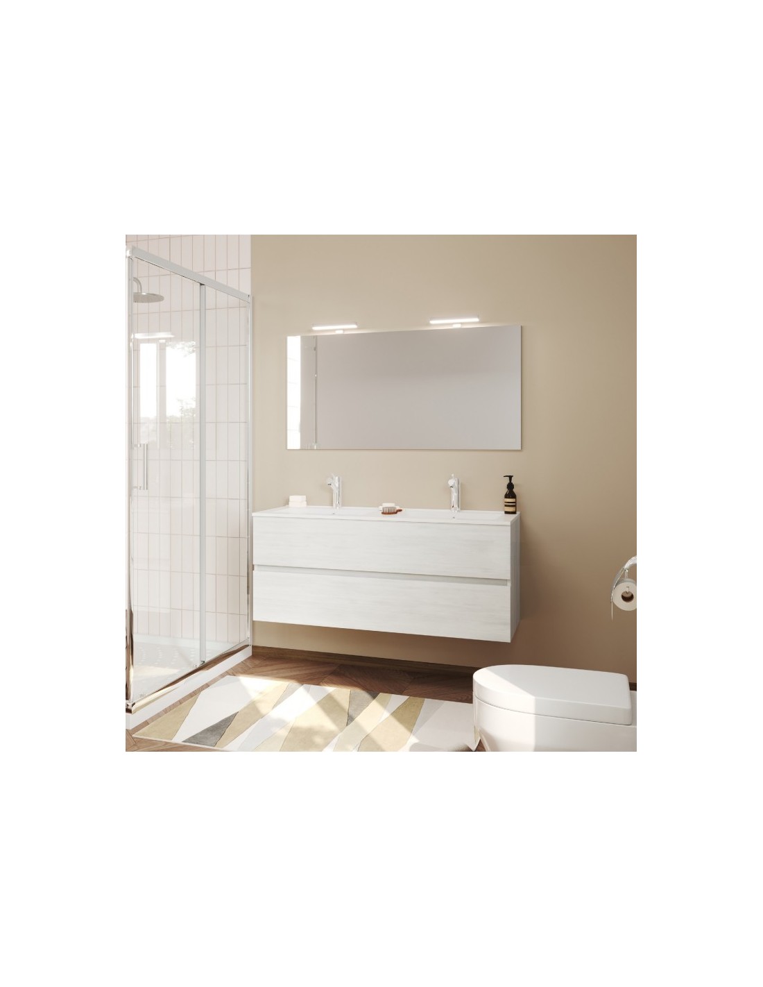 Mobile bagno 120 cm 2 cassetti - 1 anta con Vasca ampia Bianco/Legno nordico (Specchio...