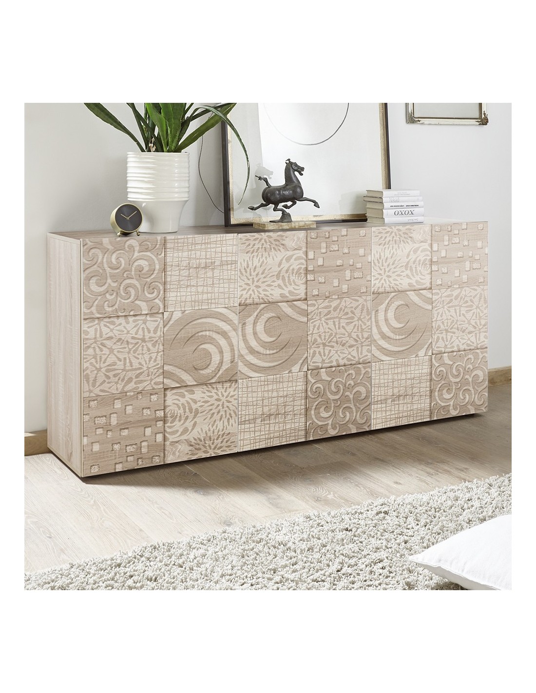 La madia dispone di 3 ante,dotate di 3 ripiani interni fissi che offrono una maggiore stabilità alla struttura.