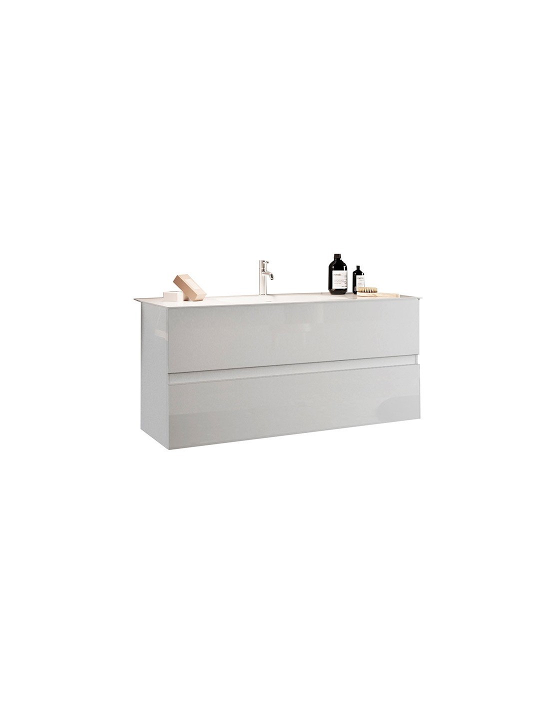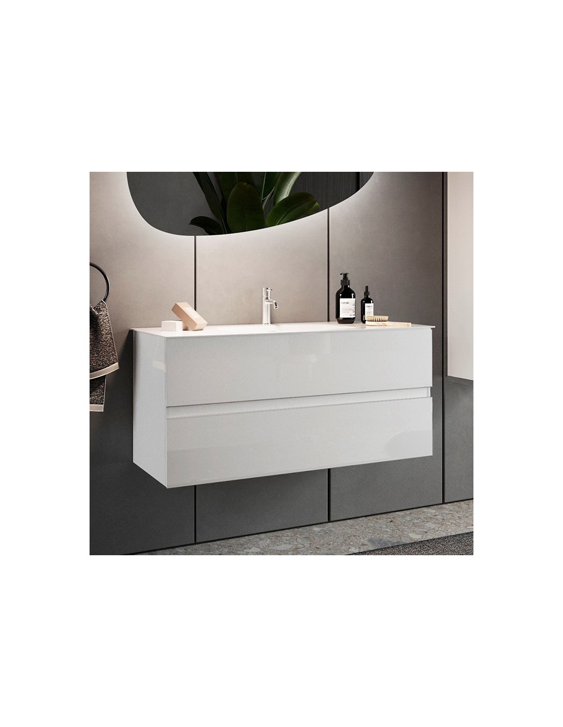 Mobile bagno cm 100 sospeso 2 cassetti Bianco lucido  (Specchio escluso)
