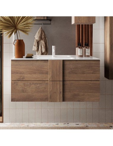 Mobile bagno sospeso 2 cassetti - 1 anta con lavabo d'appoggio cm 120 Tortora/Quercia