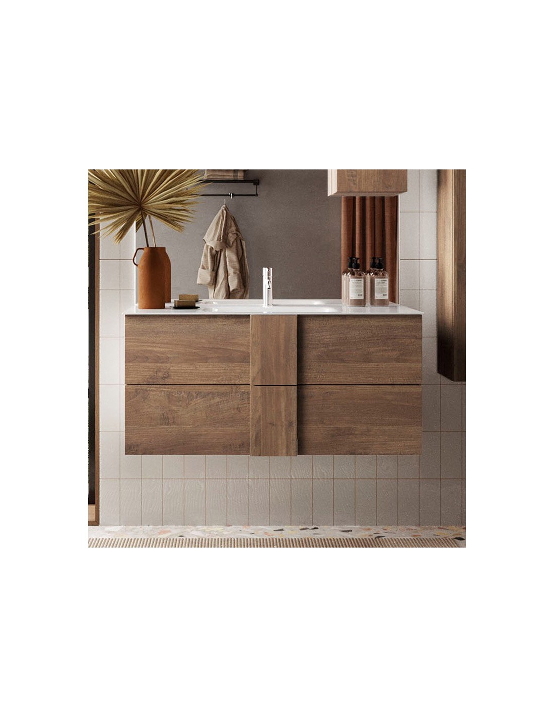 Colori: Tortora - Top Quercia naturale - Lavabo Bianco.