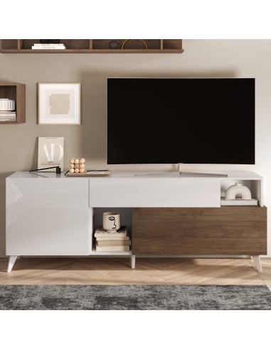 Porta TV 1 anta - 1 cassetto - 1 ribalta Bianco laccato / Mercure