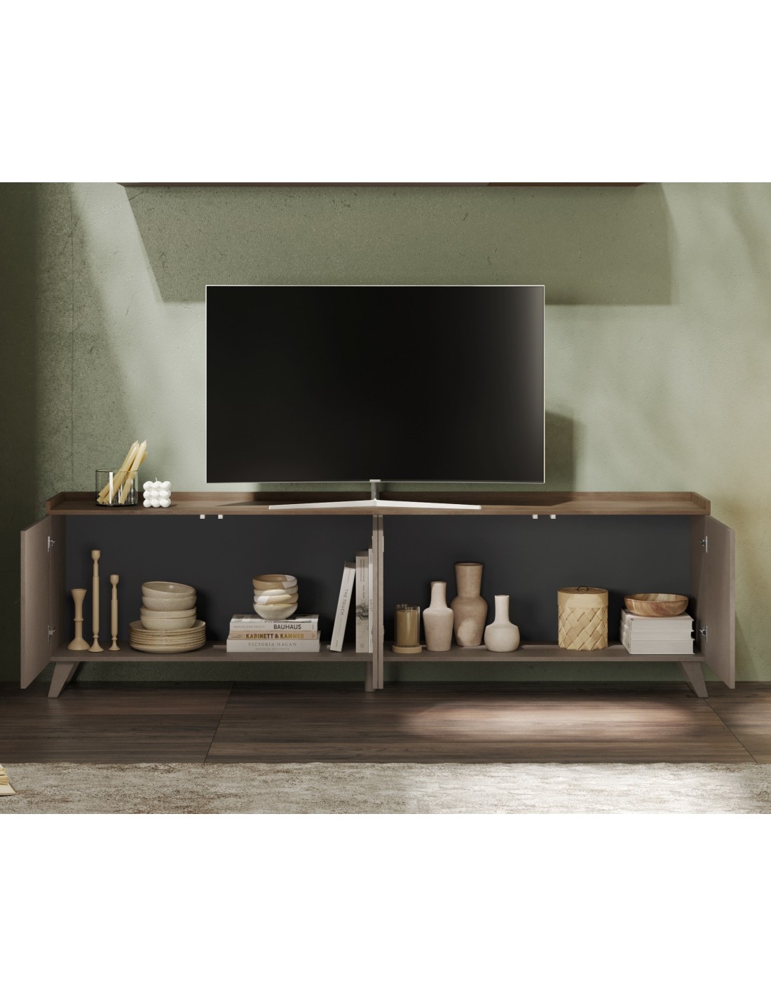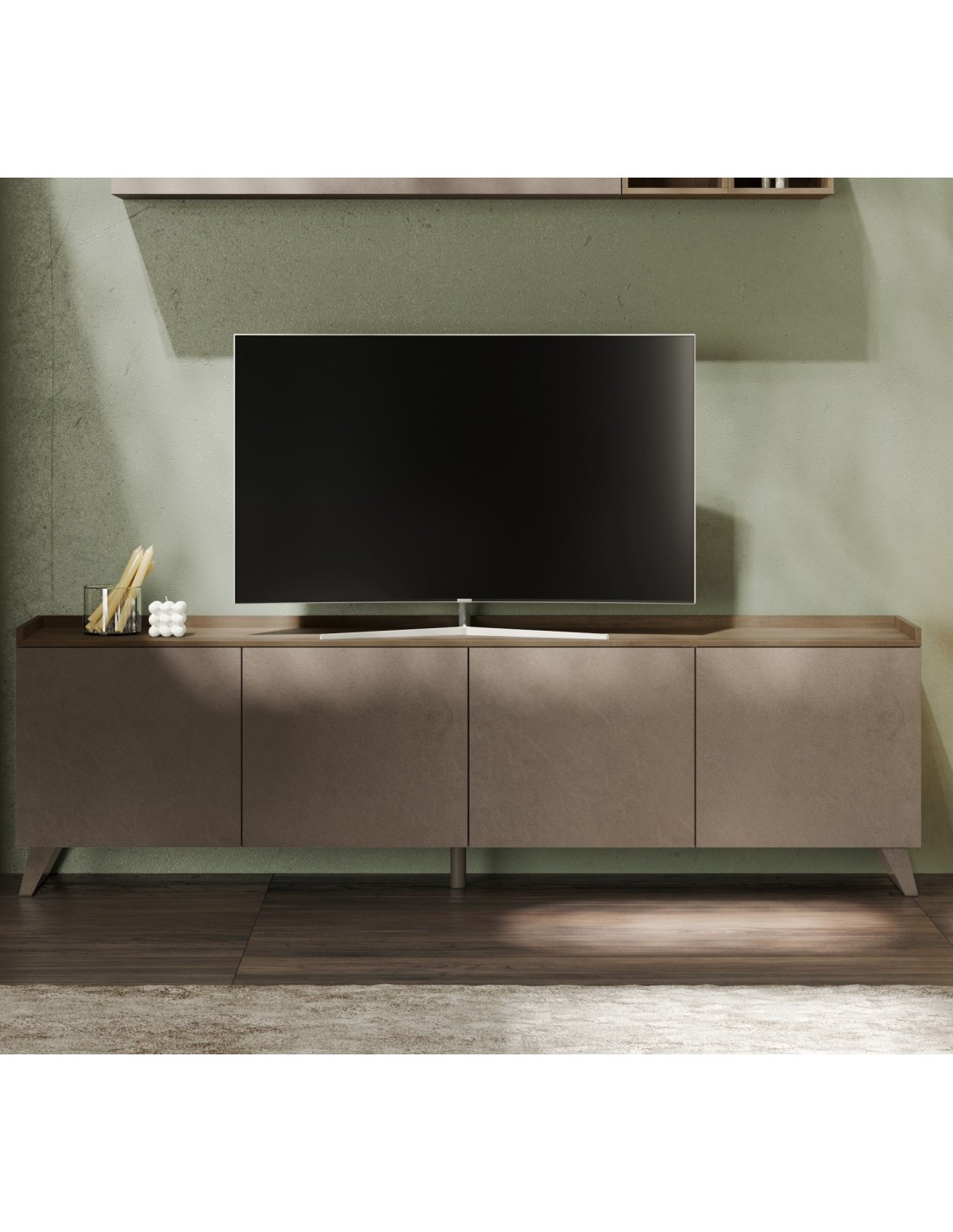 Porta TV 4 ante su piedini con top a vassoio.