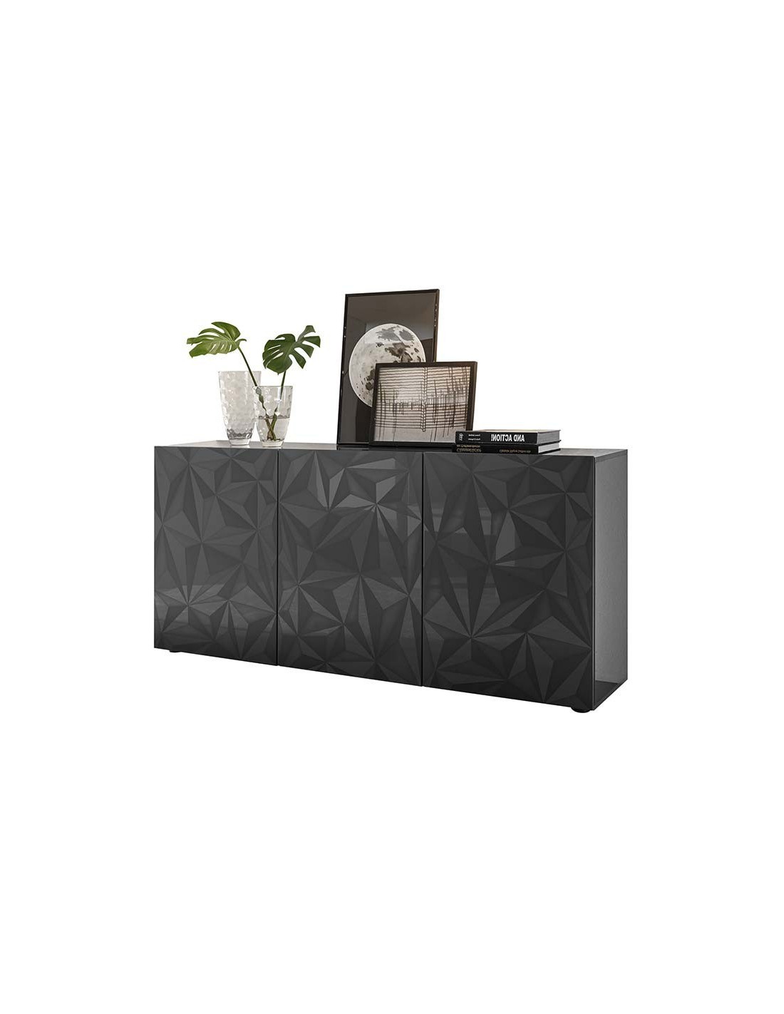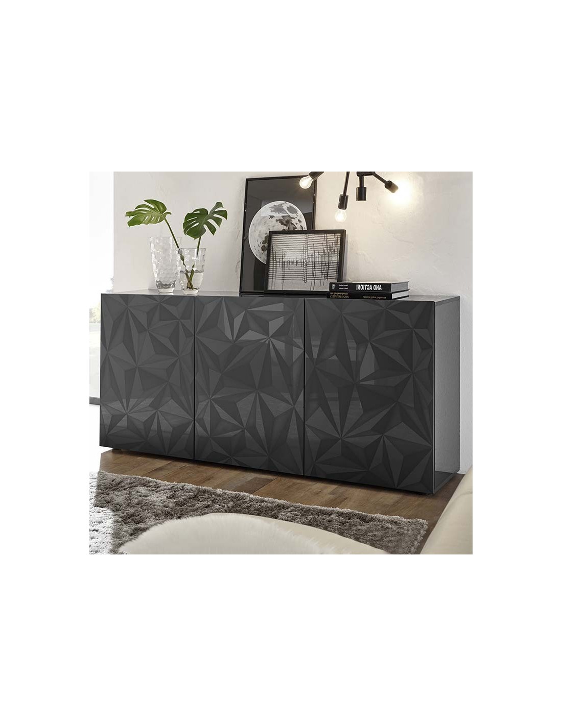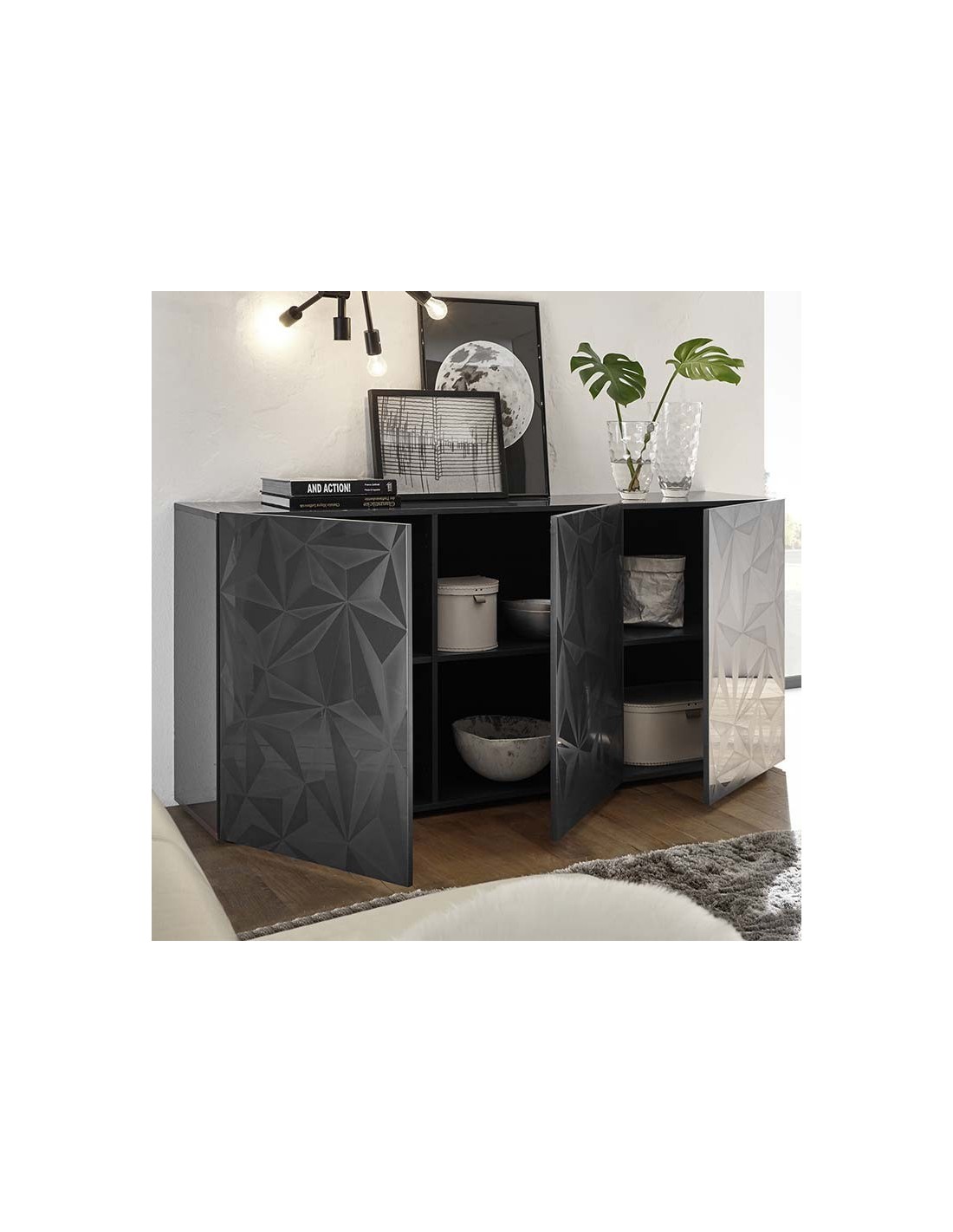 Madia 3 ante con serigrafia geometrica Grigio laccato