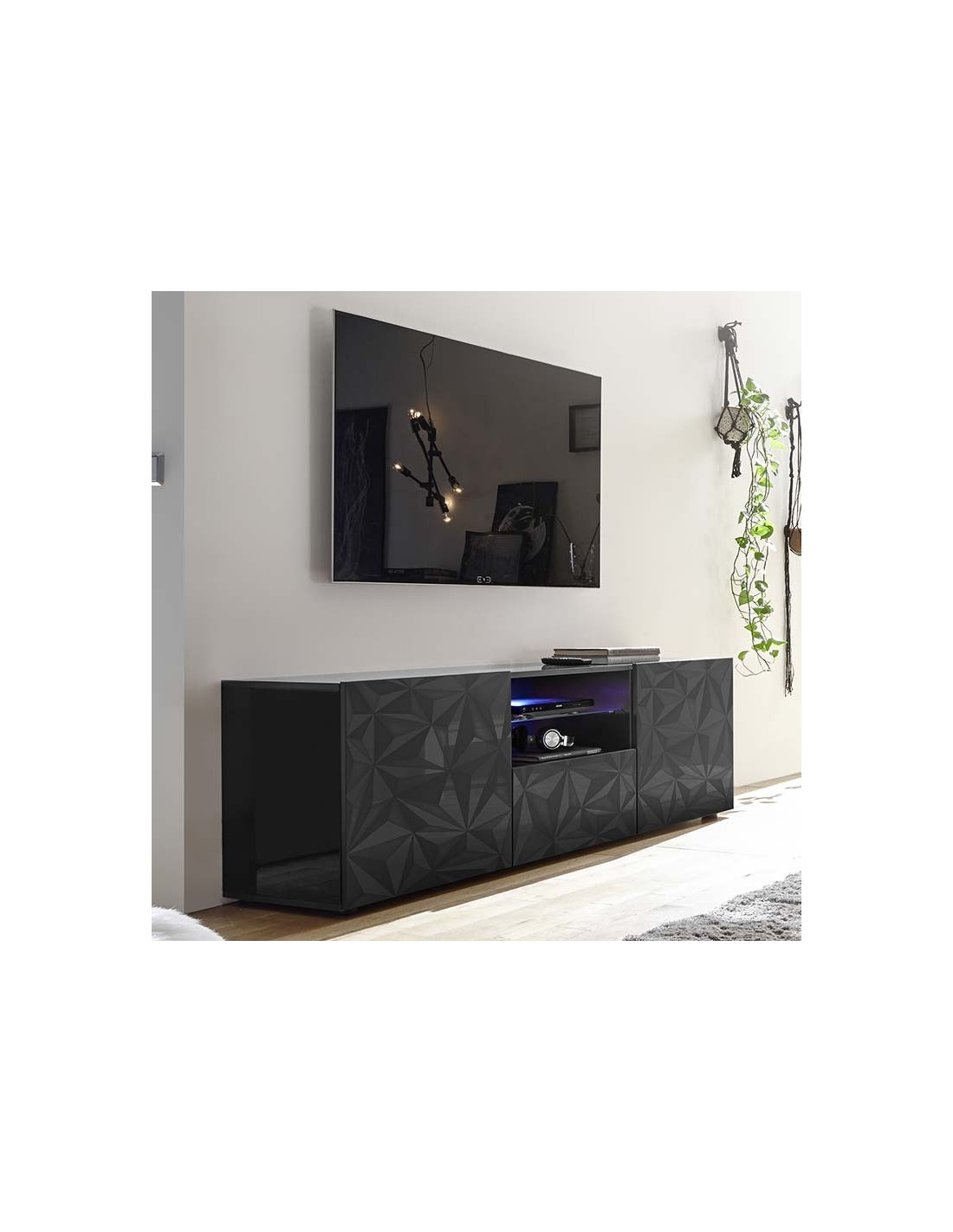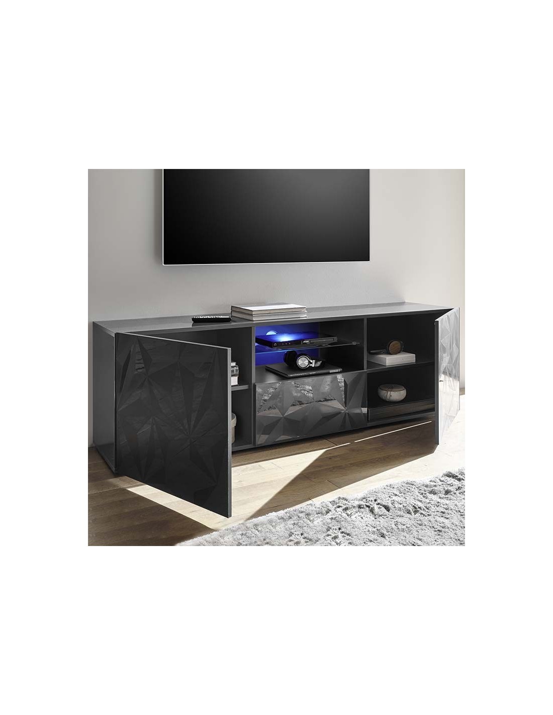 Porta TV 4 ante su piedini con top a vassoio.